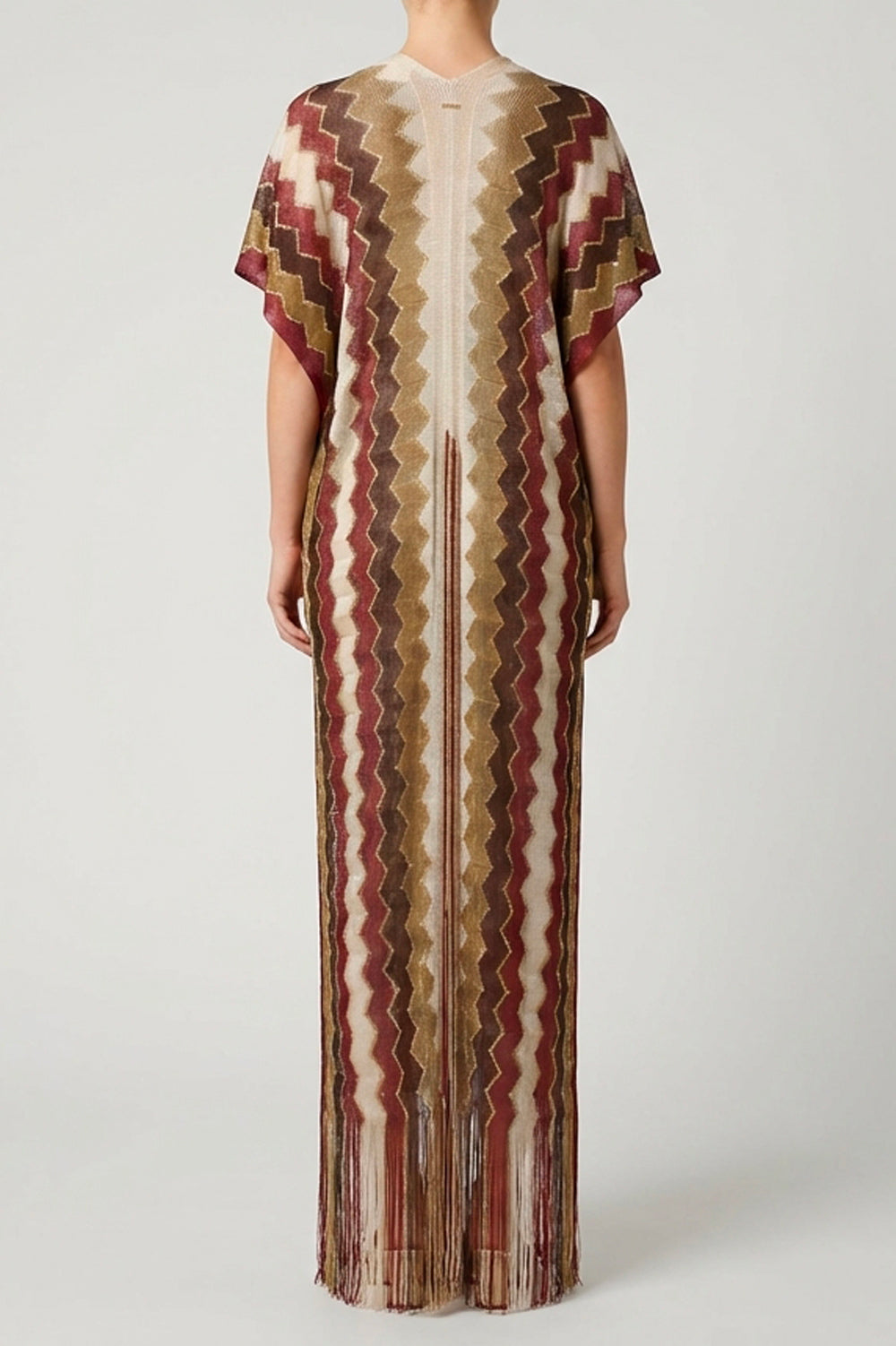 Modello: Caftano lungo con motivo zig-zag e frange
