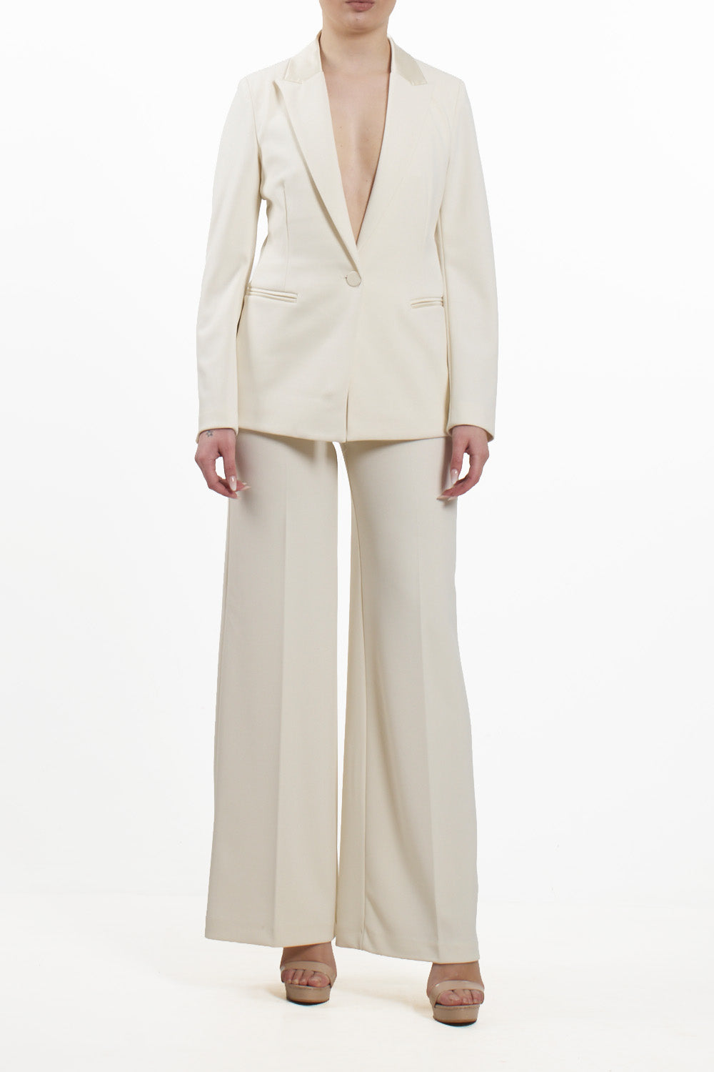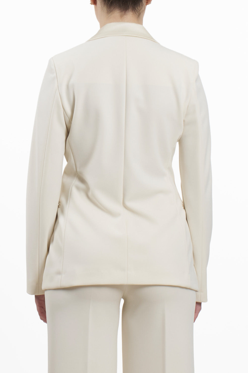 Caratteristiche: Rever a lancia in satin lucido, spalline leggermente imbottite, tessuto tecnico stretch