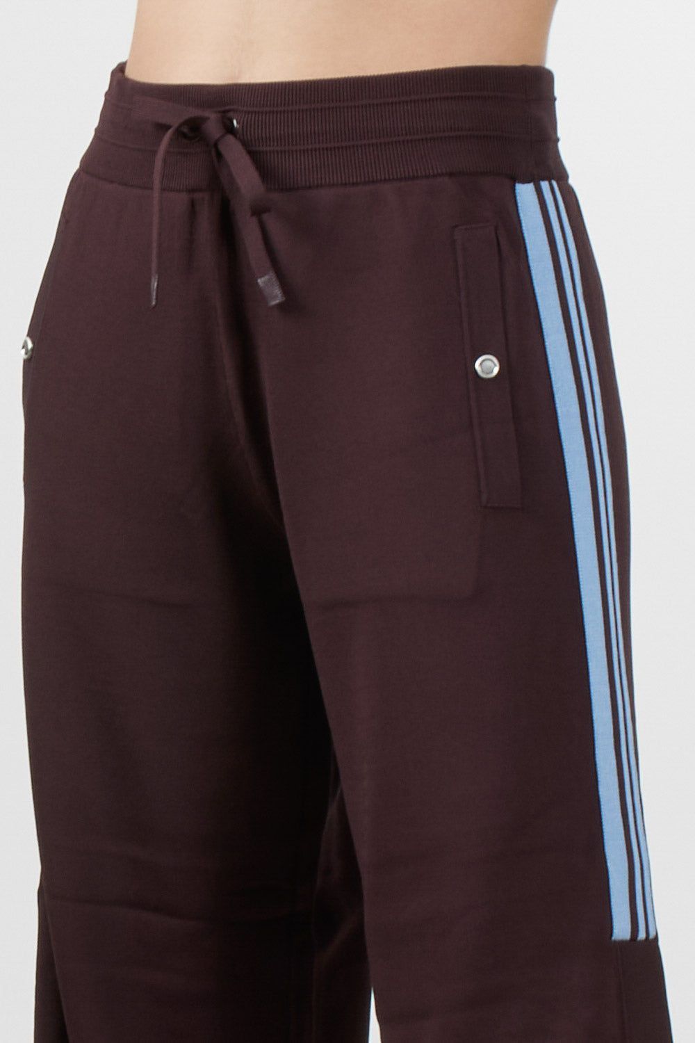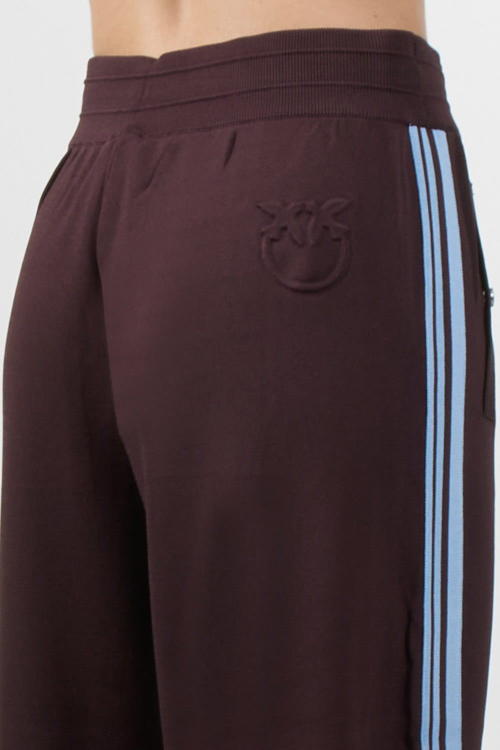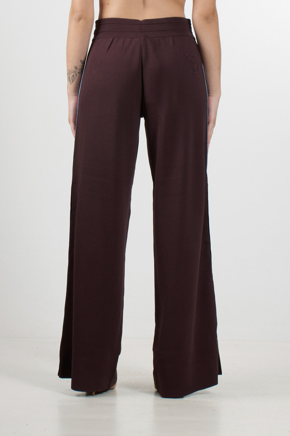 Pantalone donna in stile jogger Pinko con vita elasticata e coulisse regolabile. Il modello presenta gamba ampia con bottoni a pressione lungo i lati e bande a contrasto, che richiamano l ispirazione sporty-chic. Un capo versatile, ideale per look casual e dinamici.