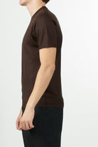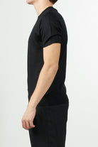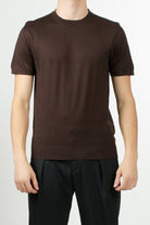 Maglia Daniele Fiesoli maniche corte con scollo girocollo, realizzata in lana e seta. Rifinita con bordi a costine su collo, maniche e fondo.