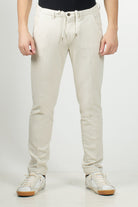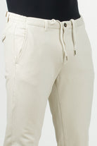 Pantalone Briglia realizzato in cotone elasticizzato, caratterizzato da linea slim e vita regolare con coulisse interna regolabile, Tasche laterali a filo e tasche posteriori con pattina e bottone.