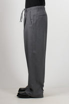 Pantaloni I'm Brian con fondo ampio e linea essenziale, caratterizzati da tasche america, chiusura con coulisse e bottoni, pences frontali