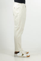 Pantalone Briglia modello Portobello realizzato in tessuto misto modal e cotone che garantisce comfort e vestibilità, pinces anteriori e tasche a filetto posteriori con bottone- Ideale per look formali e casual raffinati.