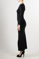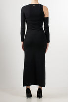 Abito lungo firmato No Secrets incarna eleganza e sensualità in un design sofisticato e contemporaneo. Realizzato in maglia elasticizzata, si distingue per la linea aderente che valorizza la silhouette e per i raffinati dettagli cut-out con bottoni gioiello dorati che impreziosiscono la spalla e la gamba. La particolarità della manica singola e lo spacco laterale conferiscono un allure moderno e femminile, perfetto per serate speciali o eventi esclusivi.