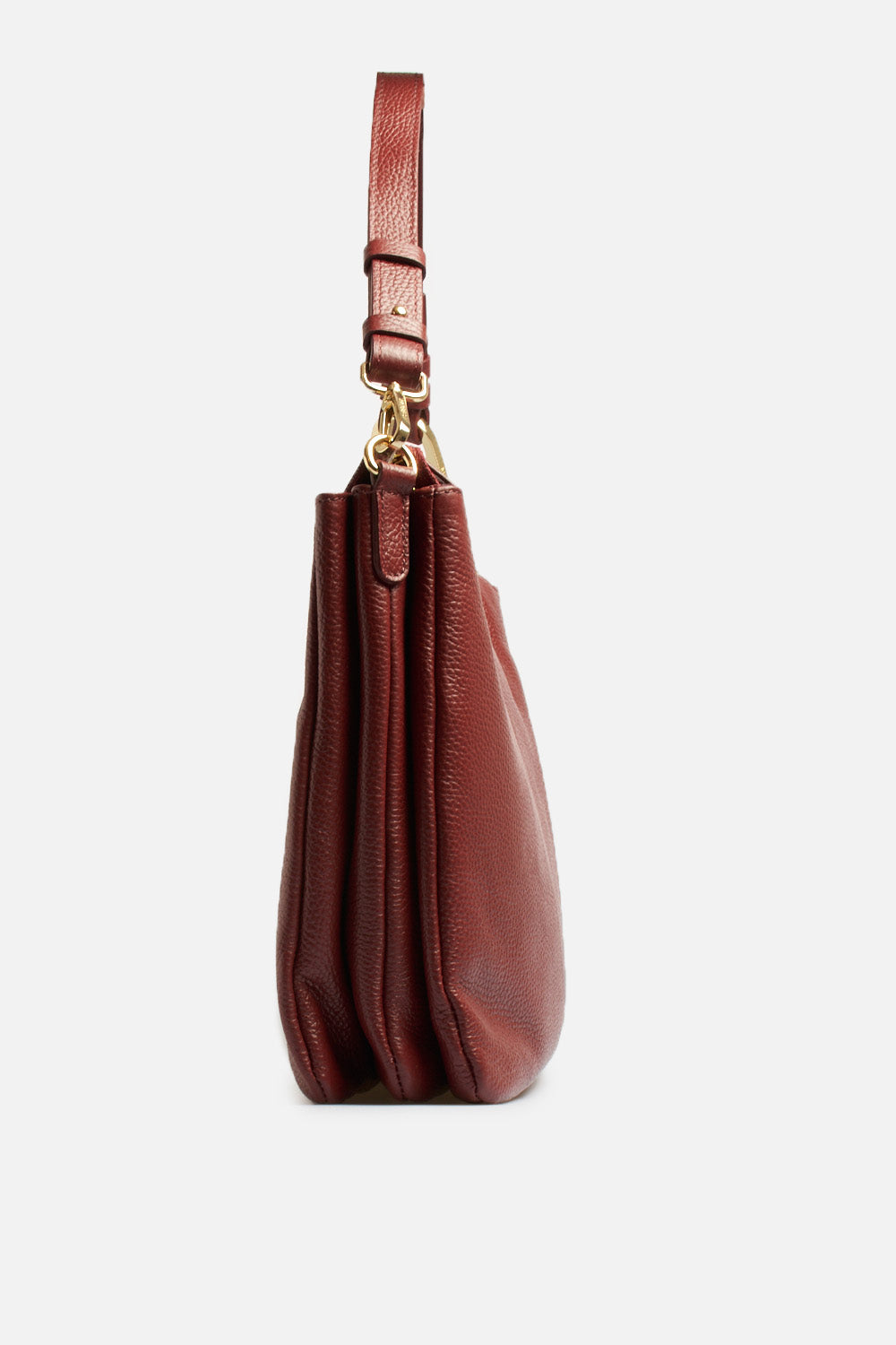Borsa grande a tracolla My Best Bag realizzata in pelle effetto martellato Made in Italy, caratterizzata da una linea compatta e versatile,tracolla regolabile e removibile che consente di indossarla sia a spalla che crossbody, logo frontale dorato e dettagli metallici in finitura oro