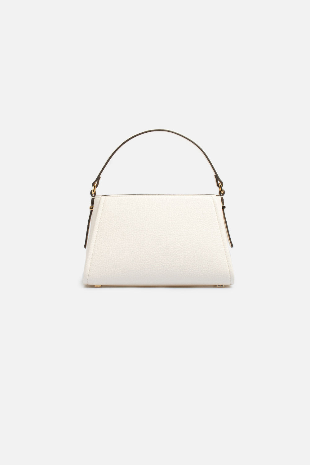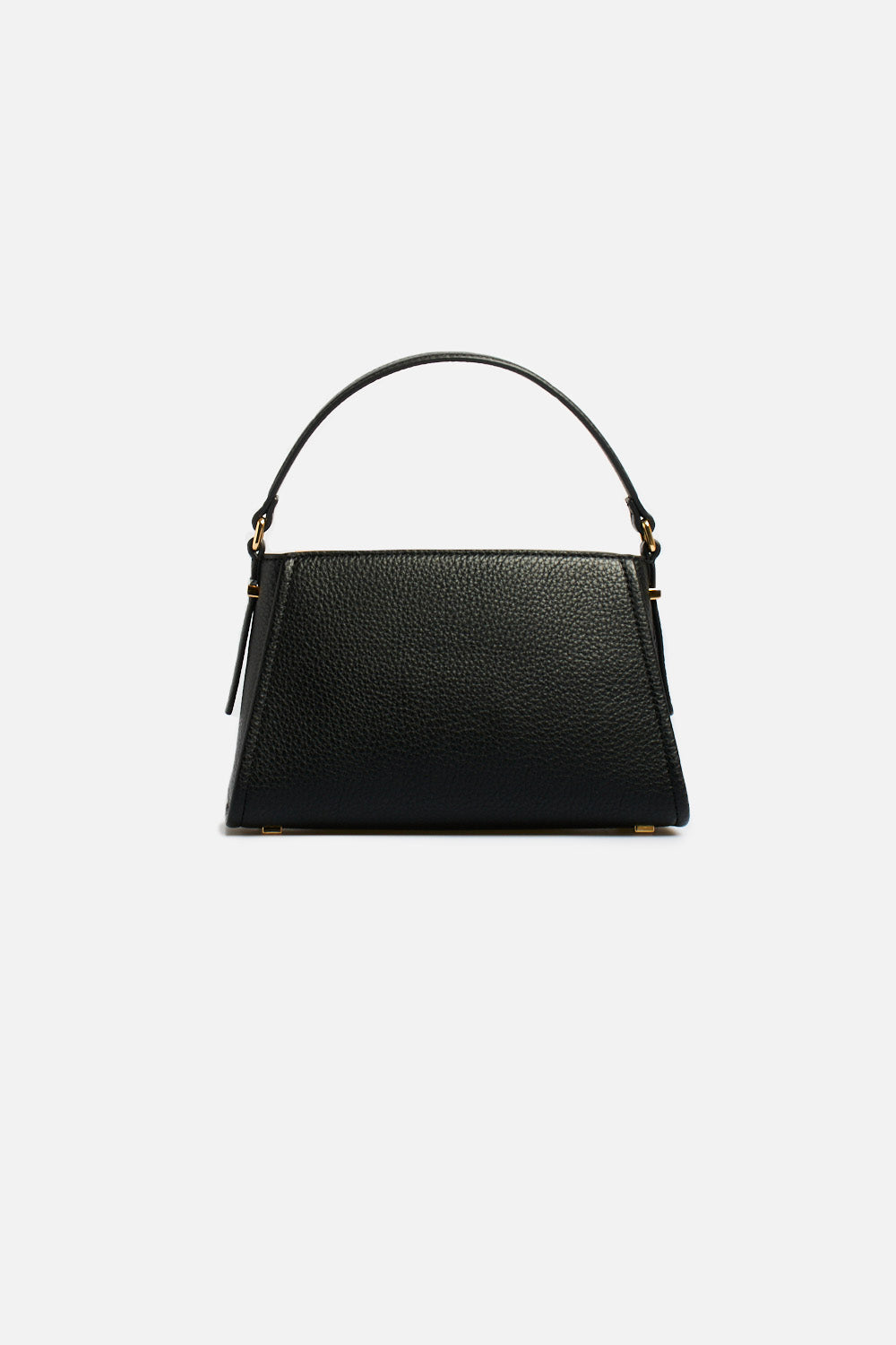 Tote piccola Elisabetta Franchi con logo in metallo dorato applicato sul davanti, tracolla regolabile e removibile, che consente di indossarla anche a spalla. Un accessorio versatile ed elegante, perfetto per completare look raffinati o casual.
