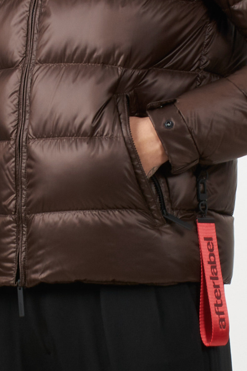 Piumino After Label dal design contemporaneo e sportivo, realizzato in nylon lucido con imbottitura in piuma d’anatra che assicura leggerezza e massimo comfort termico. Il modello presenta chiusura frontale con zip, tasche laterali a filetto con zip e cappuccio regolabile con coulisse. Patch logo sulla manica sinistra e il pendaglio rosso portalogo After Label completano il capo con un tocco iconico e dinamico. Perfetto per un look urbano e funzionale durante la stagione fredda.