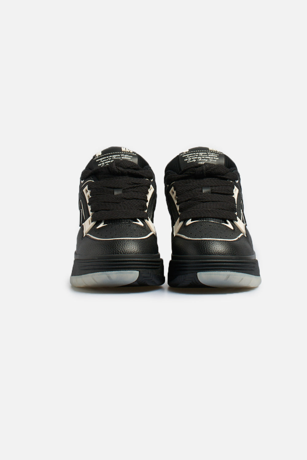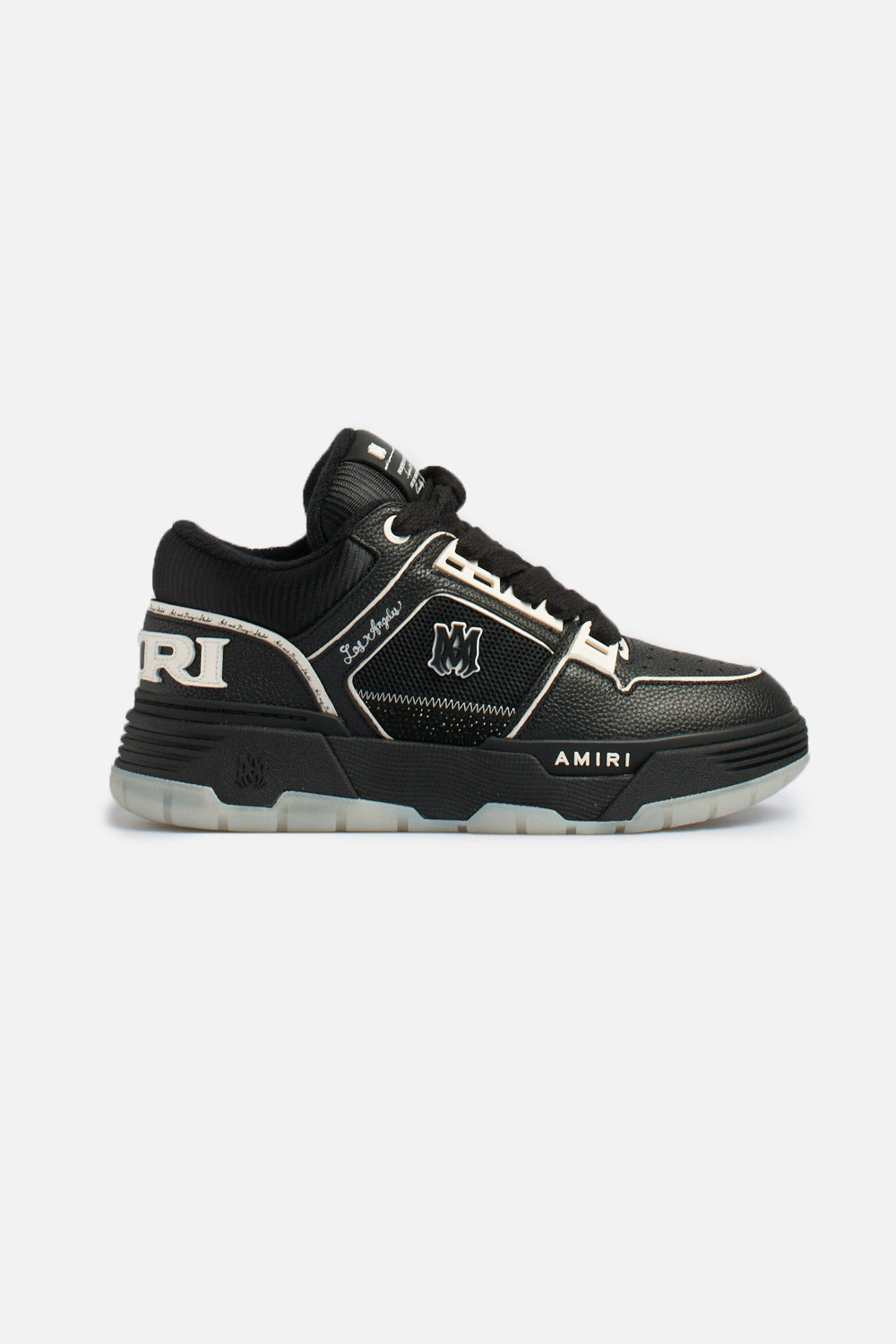 Sneakers Amiri silhouette sportiva e le finiture iconiche del brand, come il logo “AMIRI” sul lato e sul tallone e la scritta “Los Angeles” ricamata. La suola in gomma traslucida garantisce comfort e aderenza, mentre la linguetta imbottita e i lacci spessi donano un look street esclusivo. Perfette per completare outfit urban di tendenza o per aggiungere un tocco fashion a look casual.