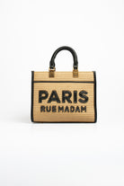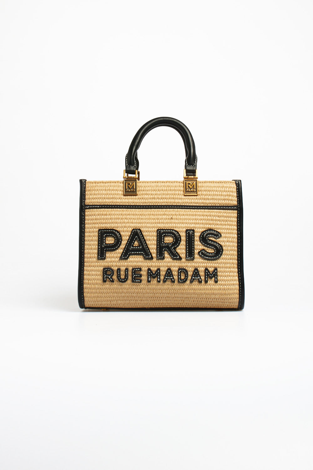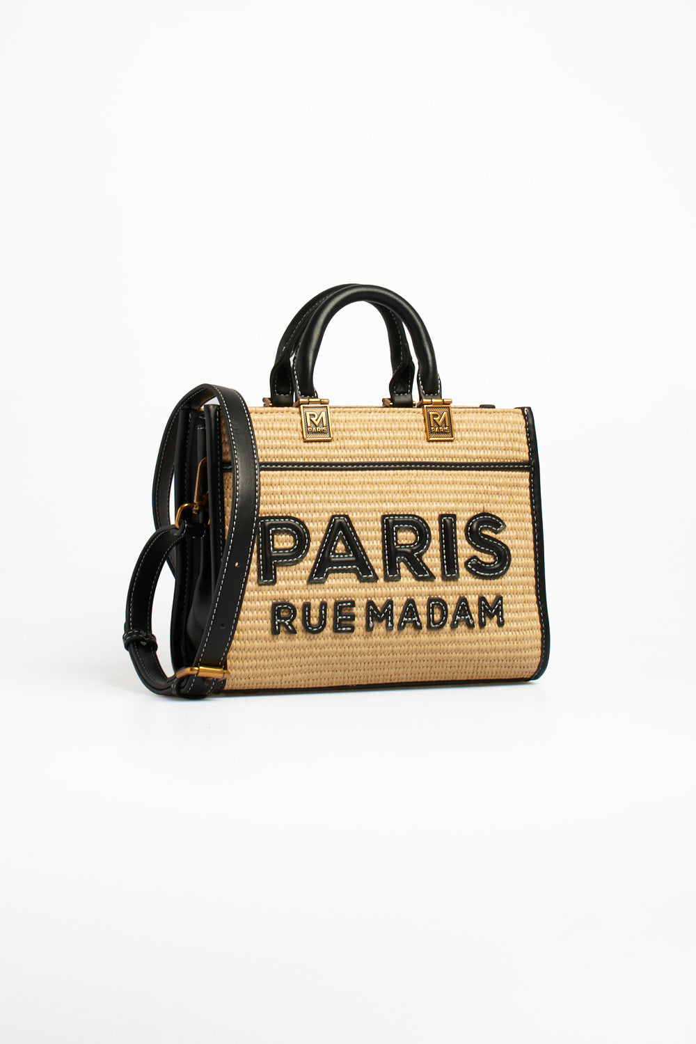 La Iconique Mini Tote S di Rue Madame Paris è una reinterpretazione chic e compatta della classica borsa in paglia, pensata per chi ama lo stile mediterraneo con un tocco parigino. Questo modello si distingue per l'accostamento armonioso tra la paglia sintetica e i profili strutturati in ecopelle. Il vero protagonista è il logo "PARIS" imbottito sul fronte, rifinito con cuciture a contrasto che donano una tridimensionalità unica. Ogni dettaglio, dai manici ai componenti metallici in oro invecchiato, è studiato per fondere l'eleganza senza tempo a una praticità urbana e contemporanea.