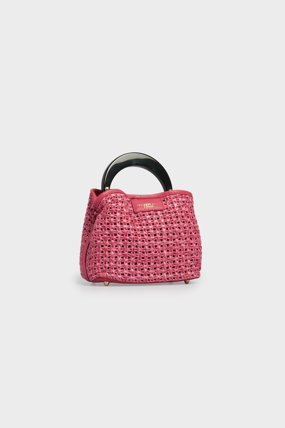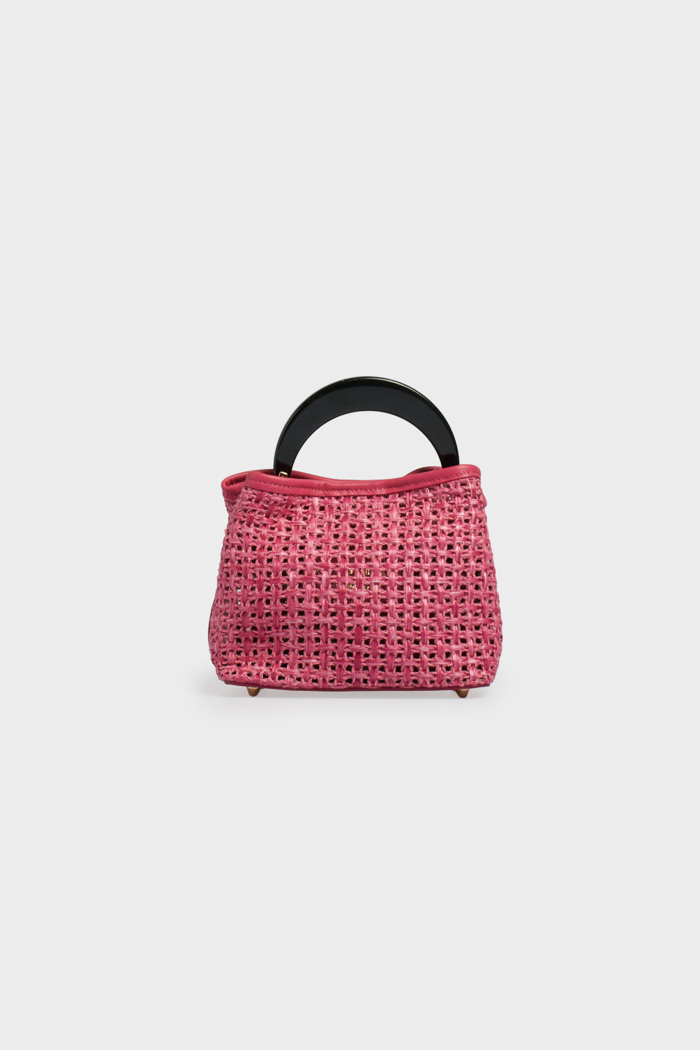Elegante e compatta, la borsa Ingrid Tabru Small è la versione in formato ridotto dell'iconico modello della maison, progettata per chi desidera un look estivo vibrante e ricercato. Questo modello fonde la leggerezza della rafia intrecciata in una vivace tonalità fucsia alla solidità strutturale della vera pelle coordinata, utilizzata per i profili e la linguetta frontale. L'elemento distintivo è il manico circolare rigido in resina lucida nera, un dettaglio di design scultoreo che dona modernità all'accessorio e garantisce un'impugnatura impeccabile, rendendolo un vero e proprio "accessorio gioiello".