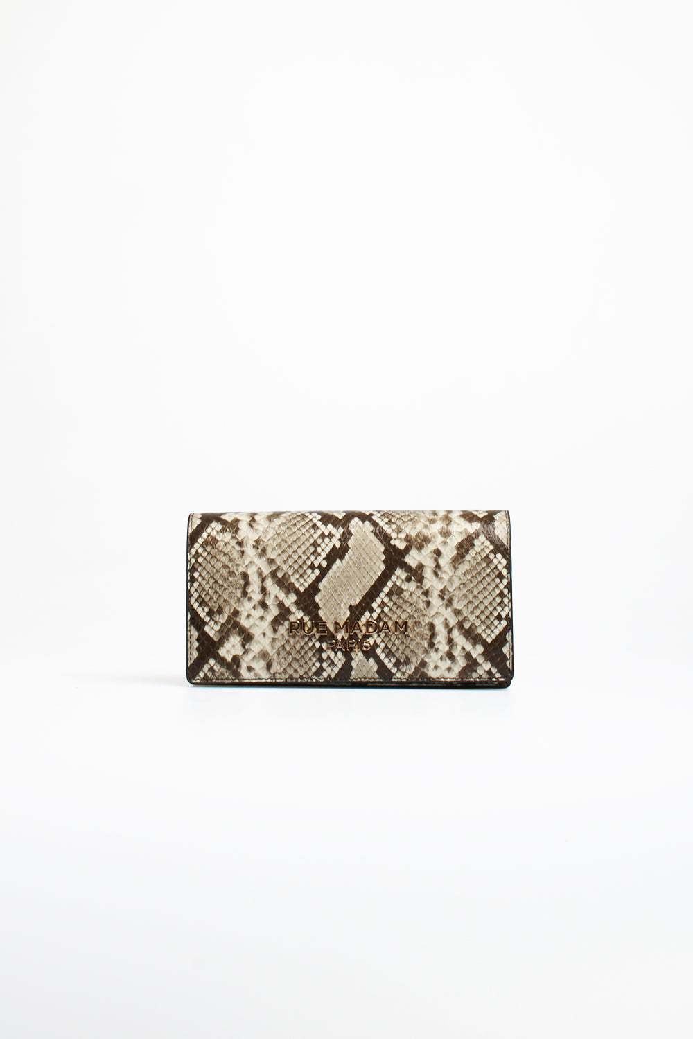 La The Case Exotique di Rue Madame Paris è la tracolla porta smartphone definitiva per chi non vuole rinunciare a un tocco di audacia e lusso nel proprio quotidiano. Realizzata in pregiata ecopelle con stampa pitone, questa borsa cattura l'essenza dello stile esotico e sofisticato. Il design è impreziosito dal logo lettering metallico color oro, che funge da punto luce distintivo. Progettata come una soluzione all-in-one, unisce la funzione di custodia per il telefono a quella di un portafoglio organizzato, rendendola l'accessorio indispensabile per muoversi con leggerezza senza rinunciare all'eleganza.
