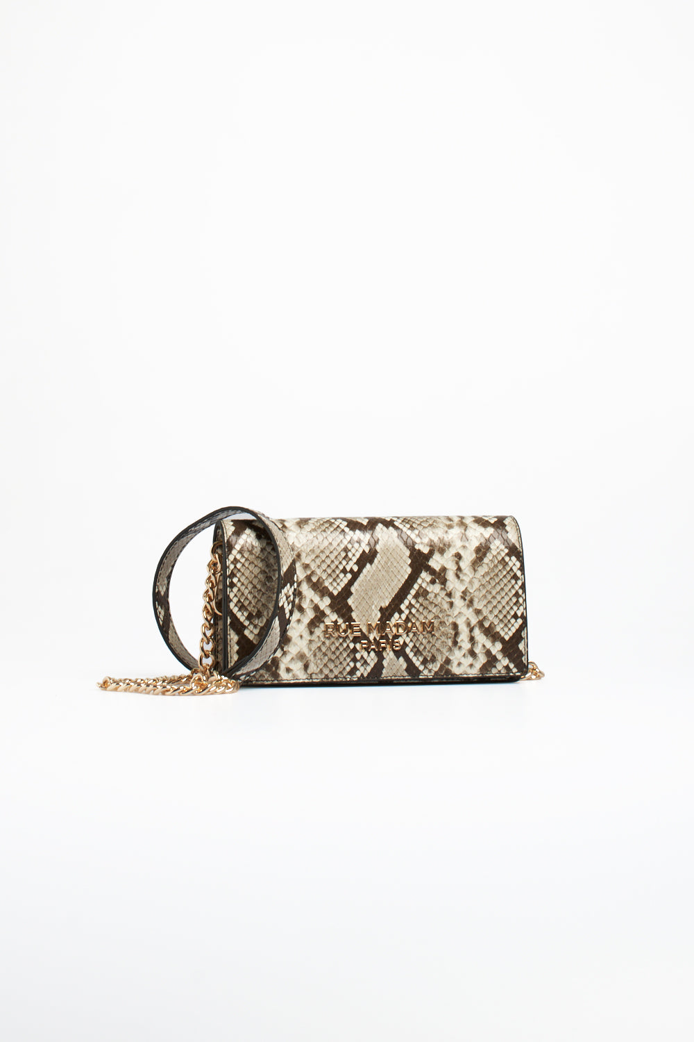 • Dettagli Estetici: Texture stampa pitone; logo lettering dorato in rilievo; catena sottile ed elegante.