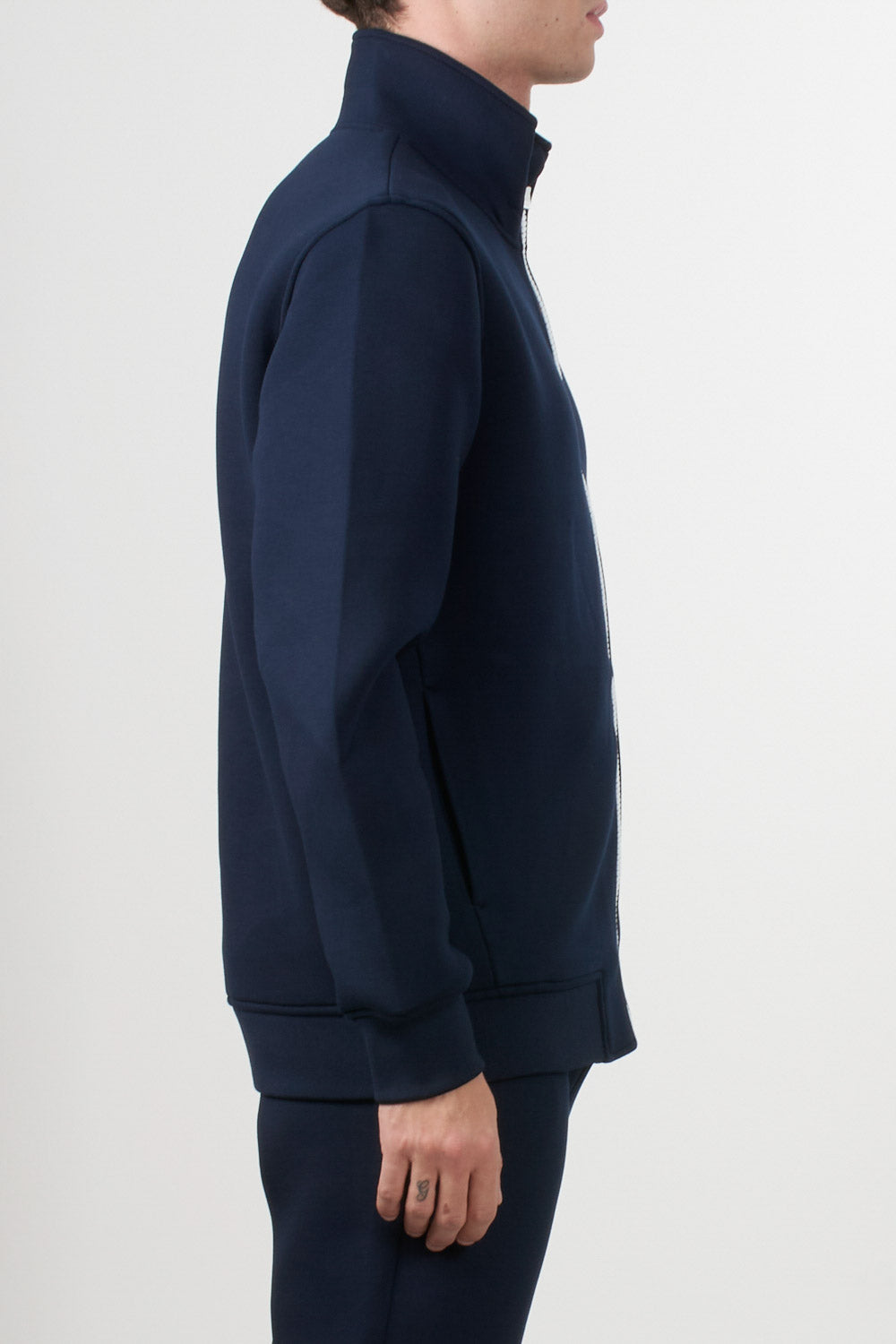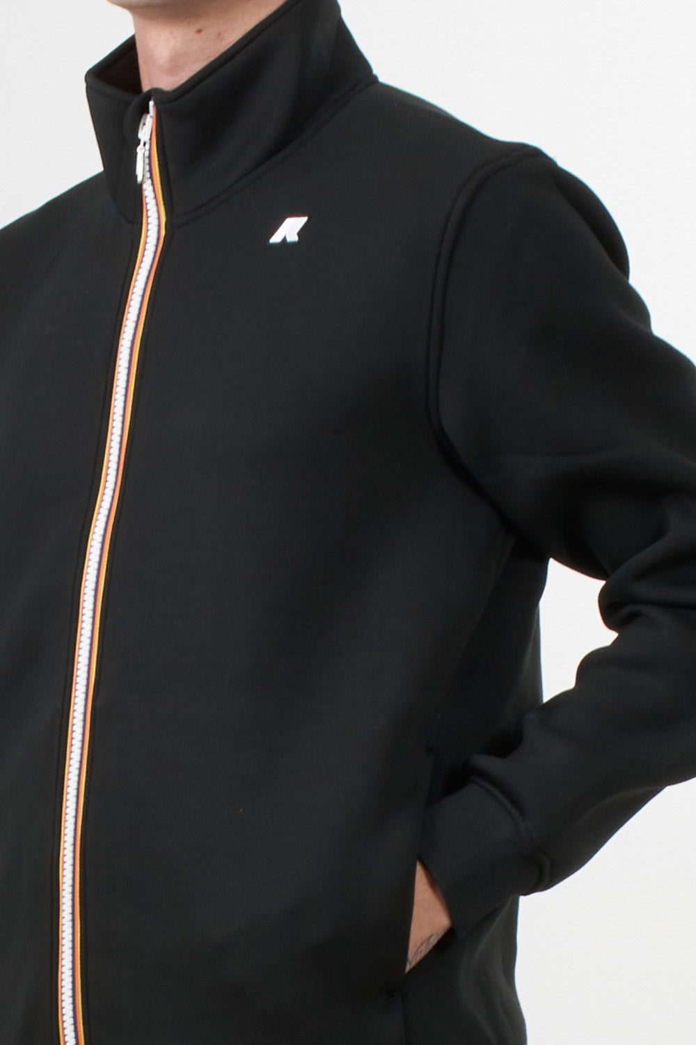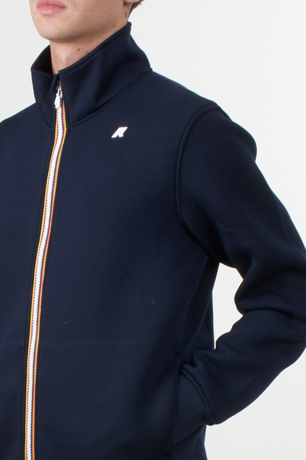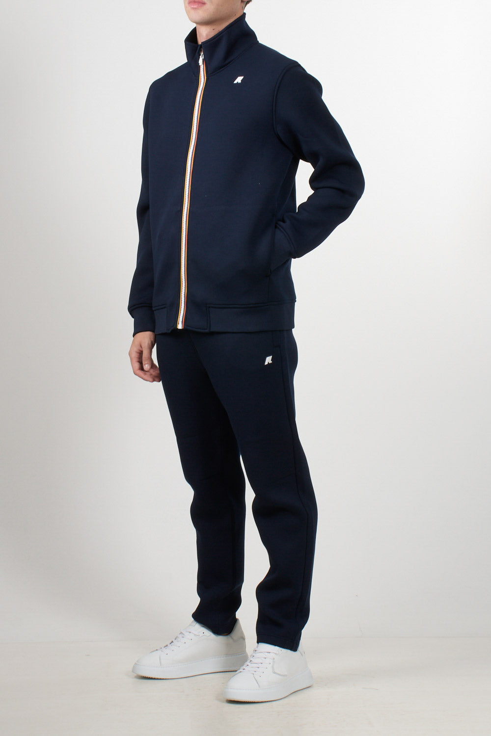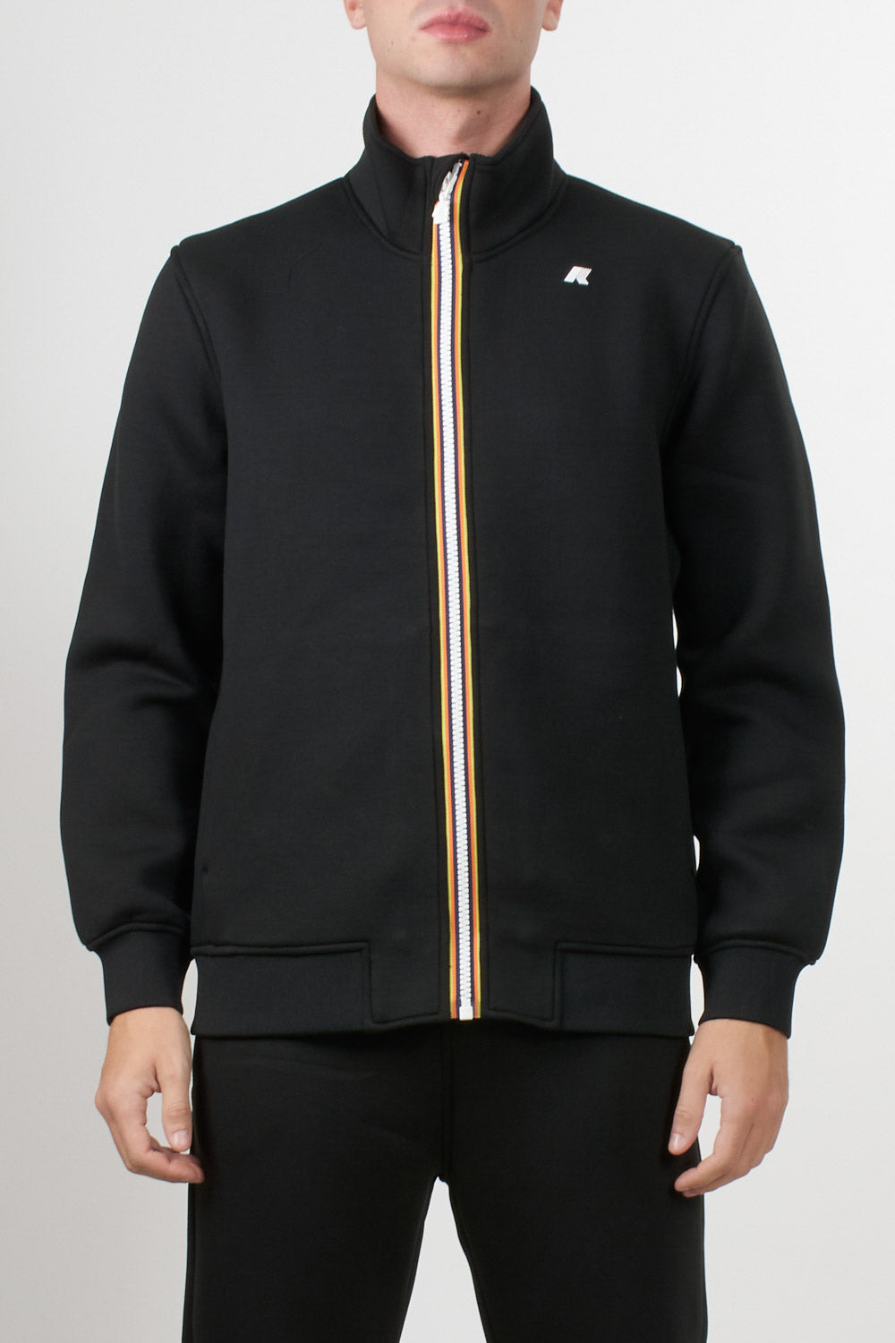 Felpa Kway, realizzata in scuba leggero per garantire comfort termico, libertà di movimento e un aspetto moderno. Il modello presenta collo alto, chiusura full zip con nastro multicolor iconico e tasche laterali a filetto. I polsini e il fondo sono rifiniti in costina per una vestibilità regolare e confortevole.
