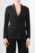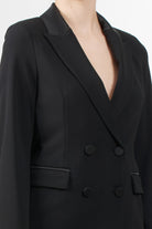 Giacca doppiopetto di Vicolo rever satinati, abbottonatura frontale con doppia fila di bottoni tono su tono e tasche con pattina, completa il look con il pantalone coordinato, perfetto per occasioni formali e look da cerimonia.