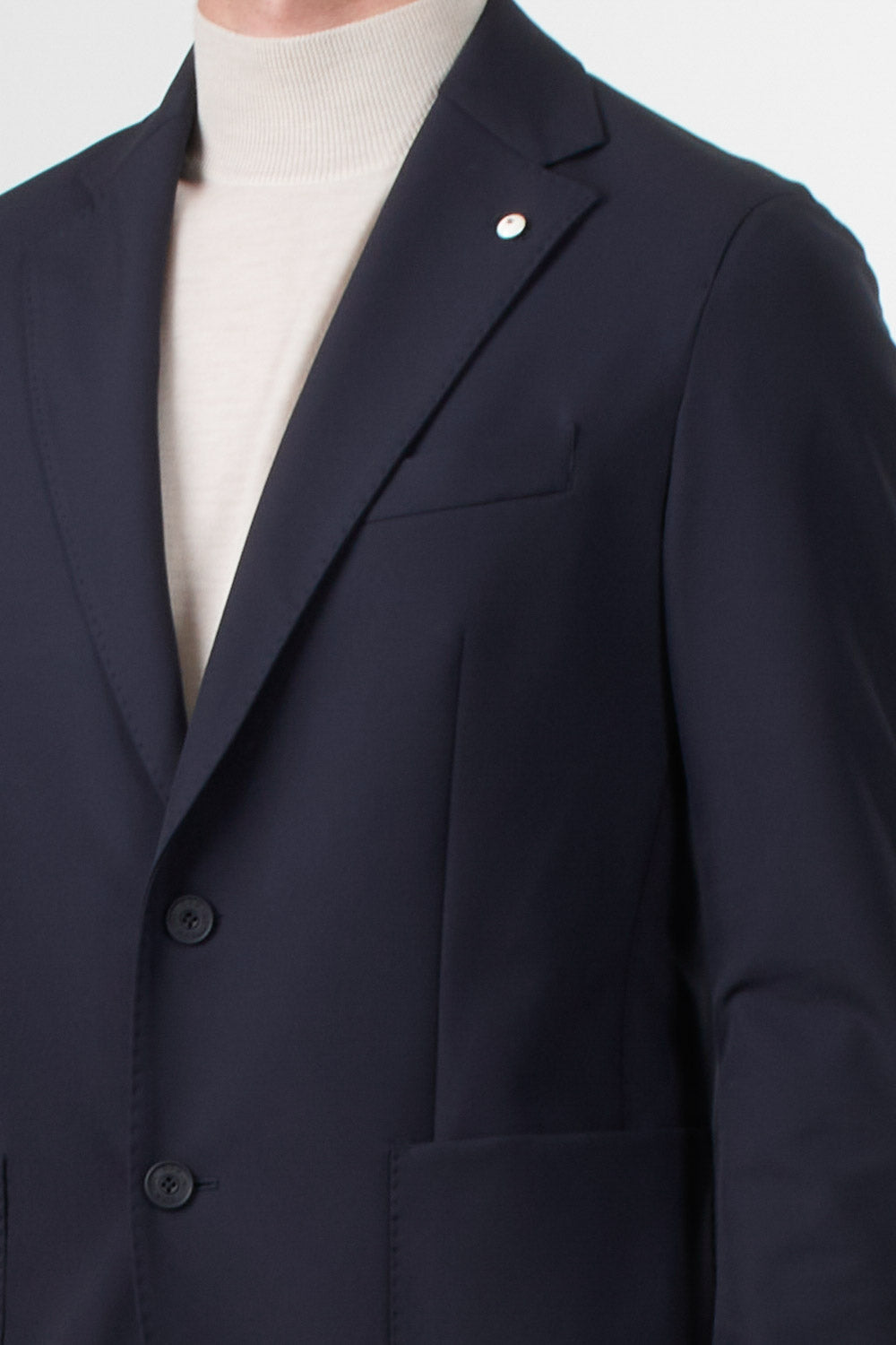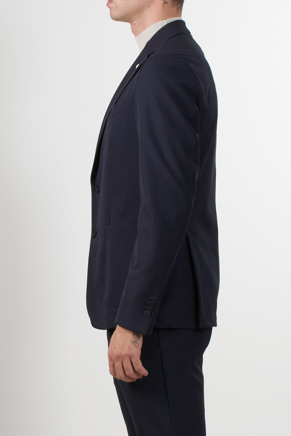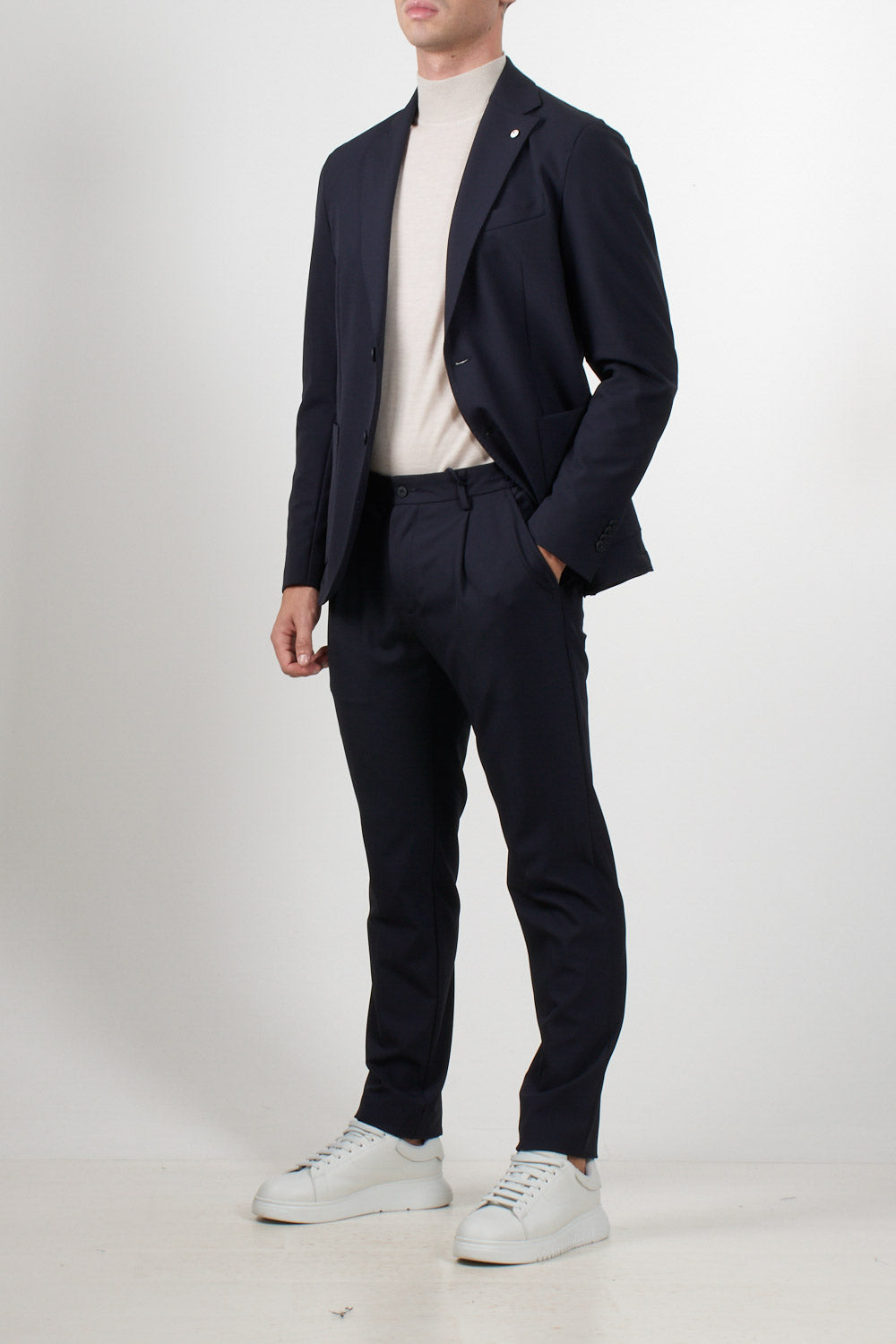 Giacca monopetto dallo stile essenziale e sofisticato firmata L.B.M. 1911. Realizzata in tessuto tecnico leggero, unisce comfort e raffinatezza grazie alla sua costruzione destrutturata e alla vestibilità moderna. Il design a due bottoni con rever classico e tasche applicate dona al capo un’eleganza disinvolta, perfetta per un look business casual o per un’occasione formale dallo spirito contemporaneo.