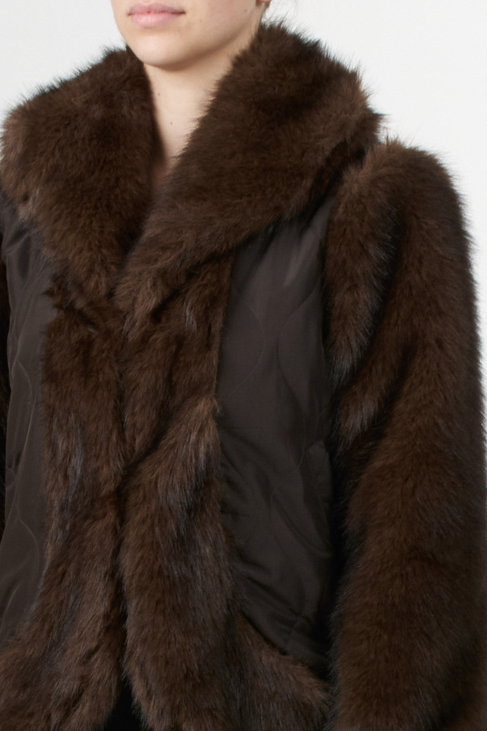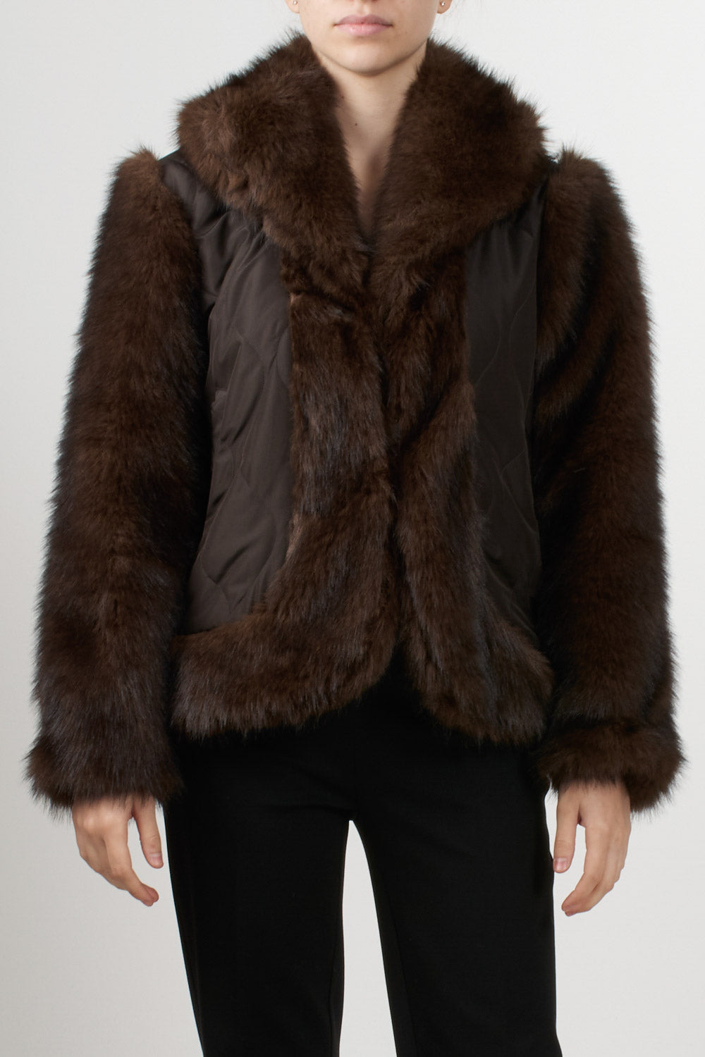 Giubbino Tensione in incarna un’eleganza sofisticata e avvolgente, perfetta per affrontare la stagione fredda con stile. Realizzata in doppio tessuto, morbido effetto pelliccia , si distingue per il suo volume pieno. Il design con collo ampio e maniche lunghe, ideale sia per look casual chic che per outfit da sera.