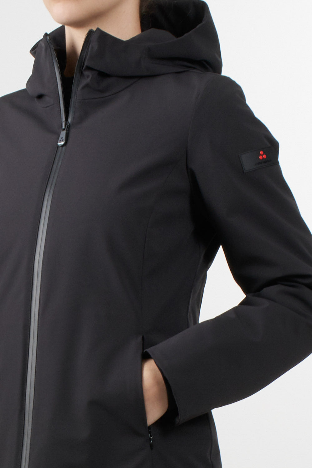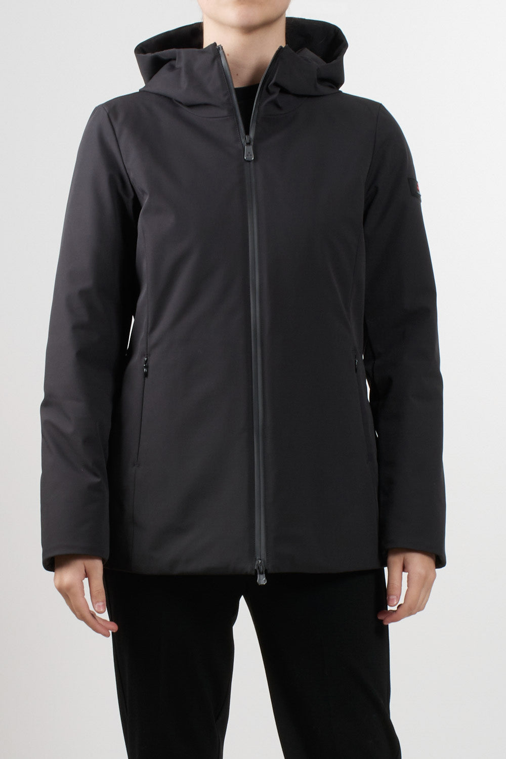 Giubbino Farquar TA Peuterey dal design minimal e funzionale, realizzato in tessuto tecnico elasticizzato con trattamento idrorepellente. Il modello è dotato di cappuccio fisso, chiusura frontale con zip a doppio cursore e tasche laterali con zip termosaldate. L’interno è rifinito con fodera leggera e imbottitura calda in fibra sintetica, pensata per garantire isolamento termico e libertà di movimento. Completa il capo il logo Peuterey sulla manica sinistra. Ideale per un look contemporaneo e performante nella stagione invernale. Vestibilità slim