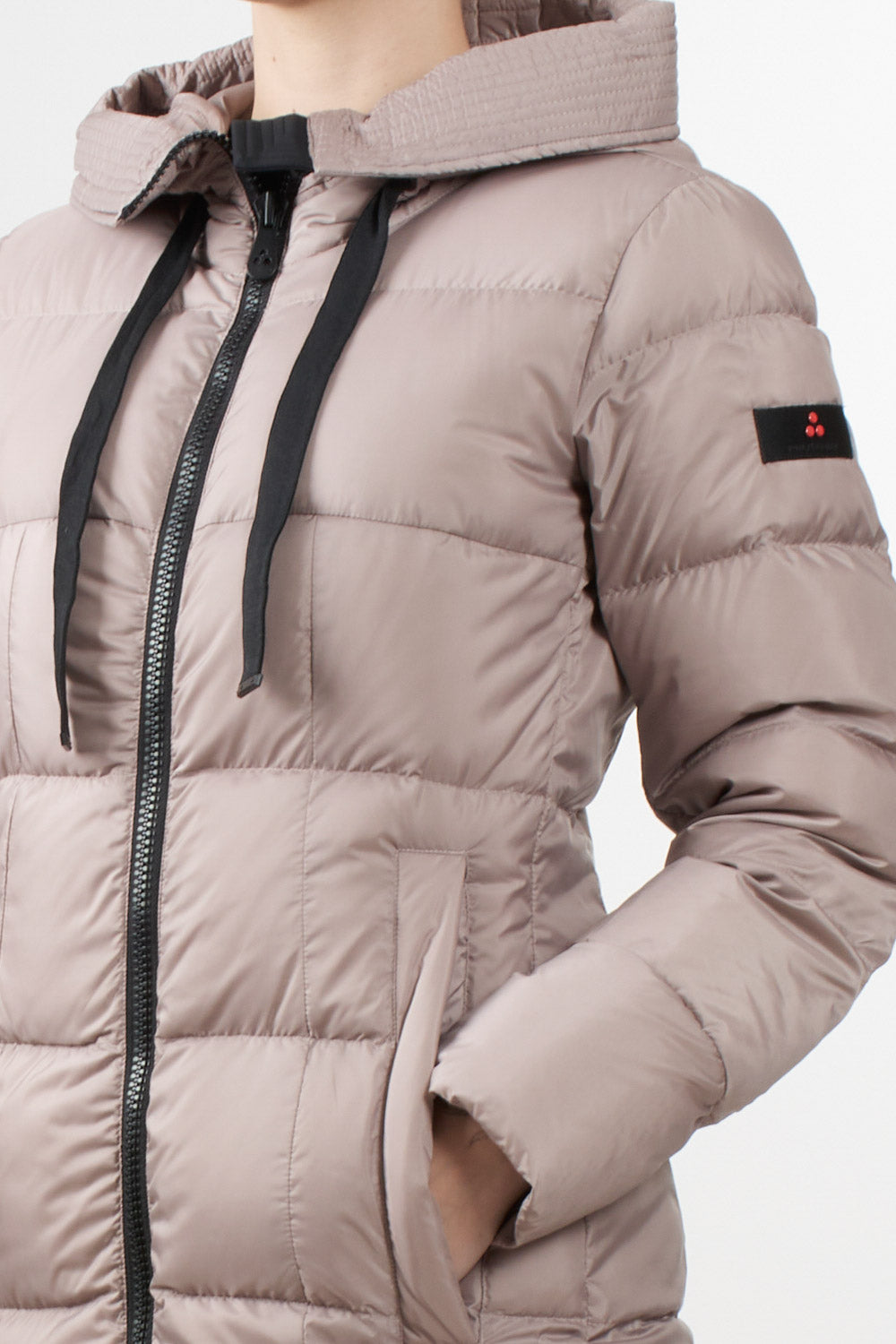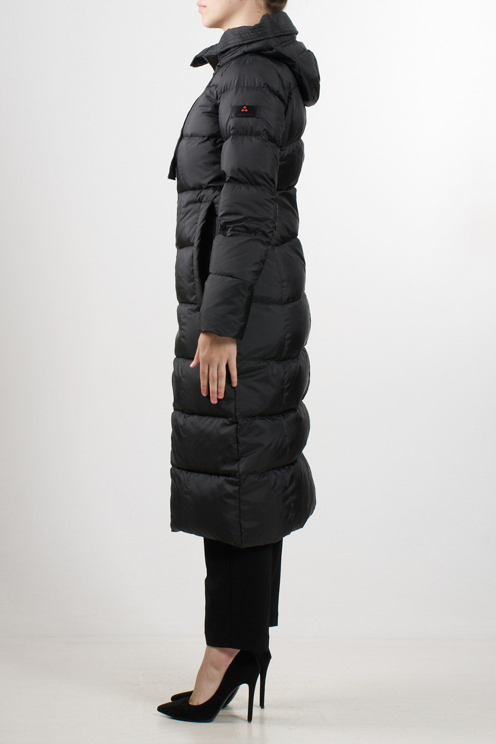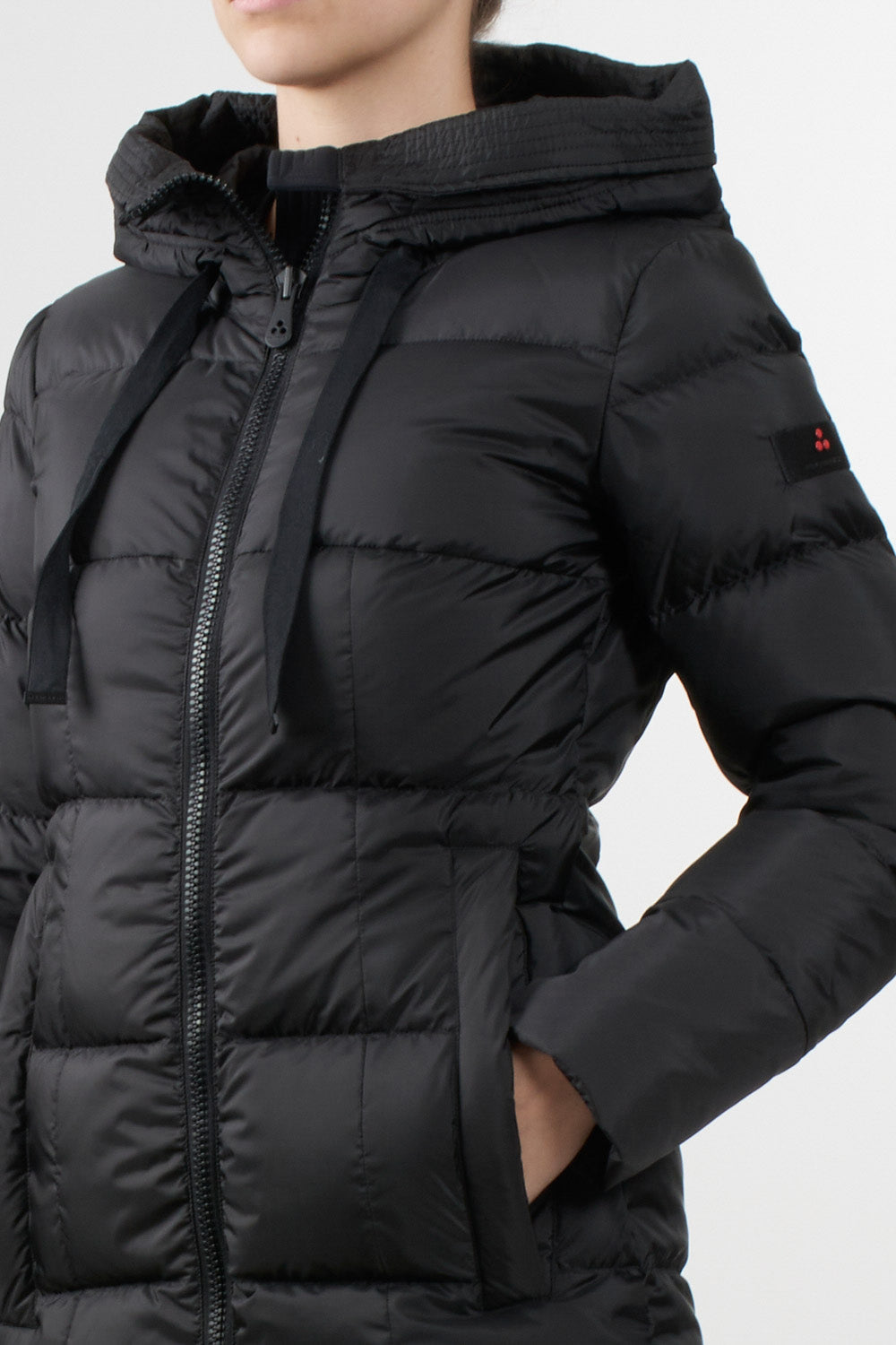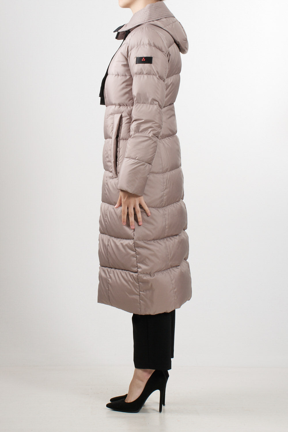 Piumino NUNKI Peuterey modello lungo imbottito in piuma naturale, caratterizzato da un design essenziale e contemporaneo. Realizzato in tessuto tecnico effetto opaco, presenta cappuccio regolabile con coulisse, chiusura frontale con zip a doppio cursore e tasche laterali inserite. L’imbottitura in piumino e piuma d’anatra garantisce calore e comfort, mentre il logo Peuterey sulla manica aggiunge un tocco distintivo. Un capo iconico per affrontare la stagione fredda con eleganza e funzionalità.
