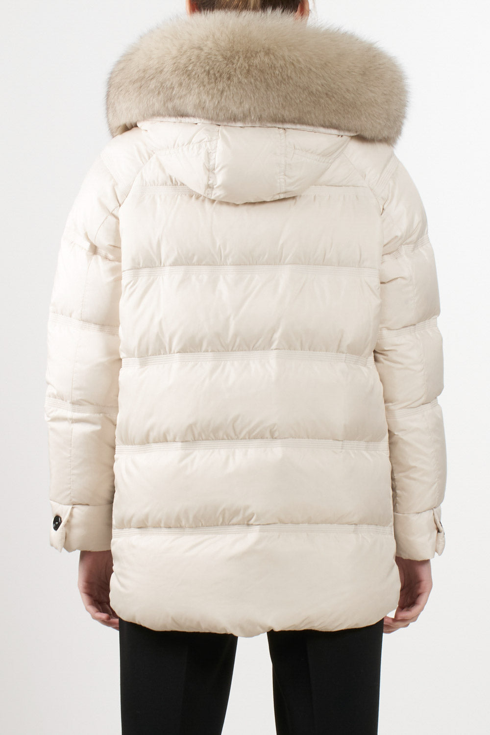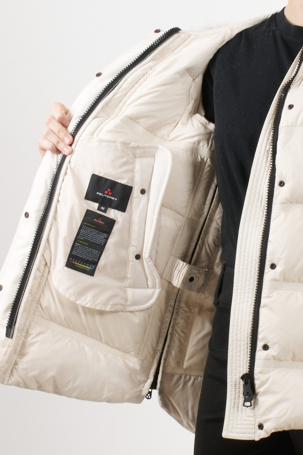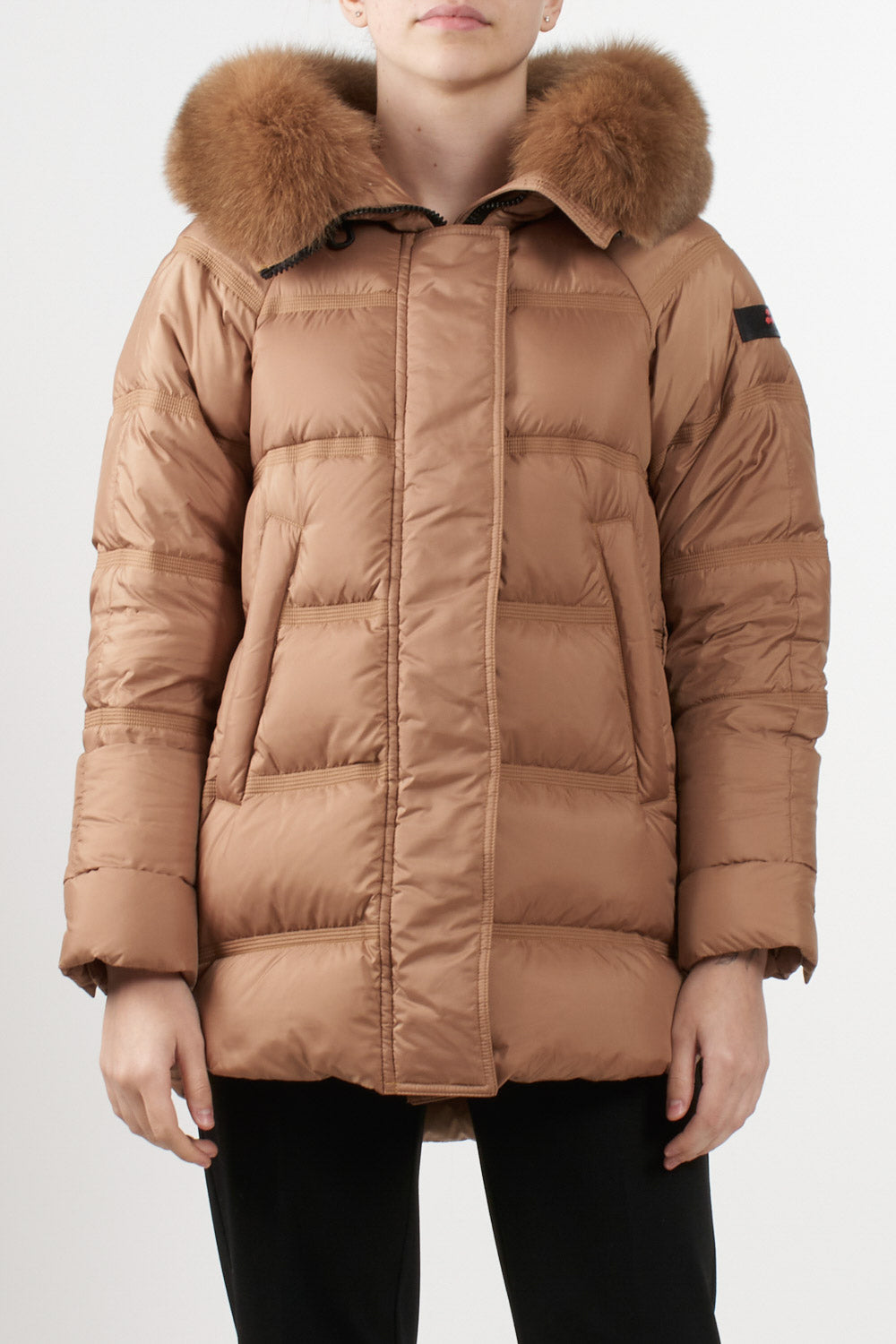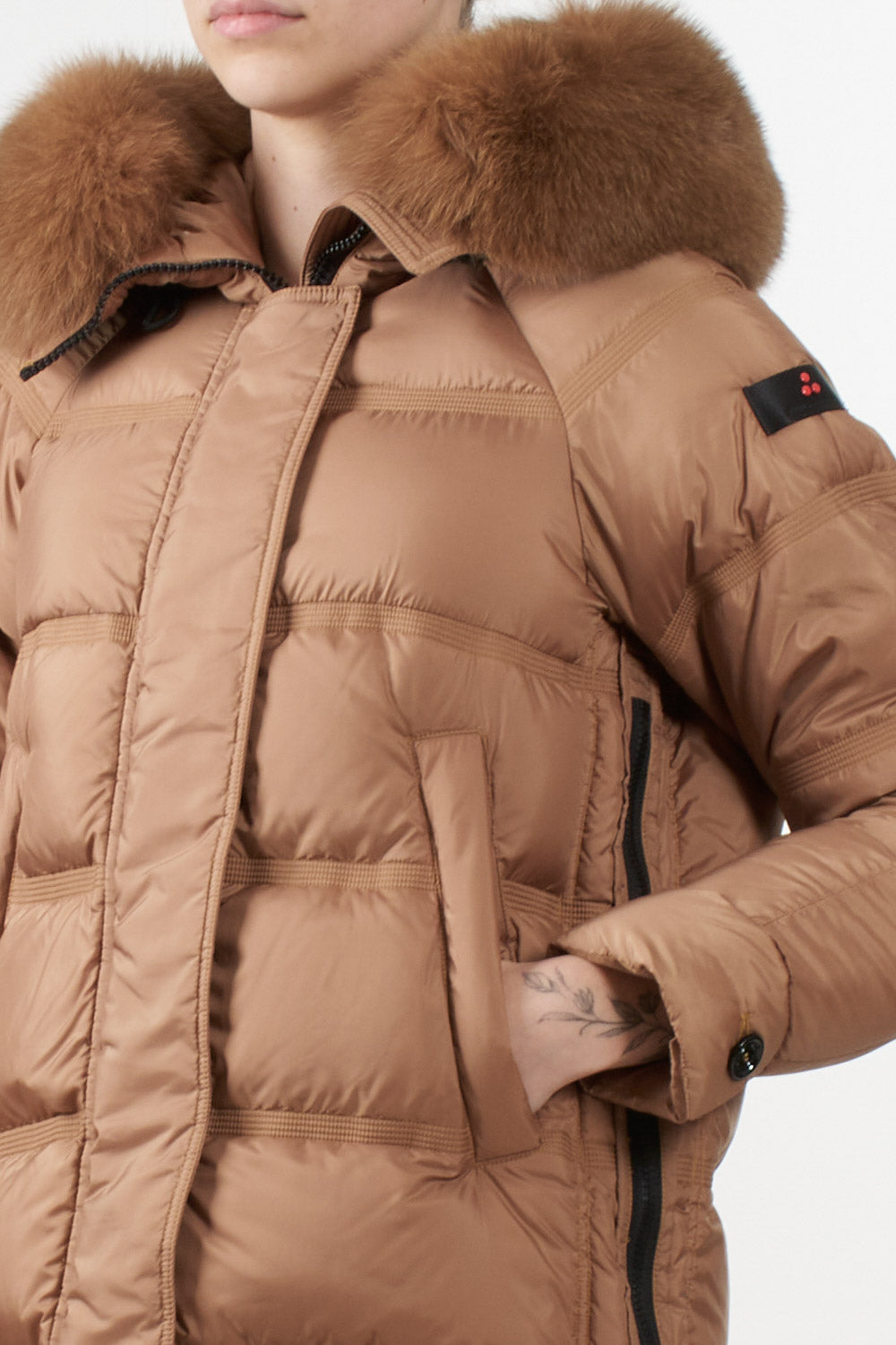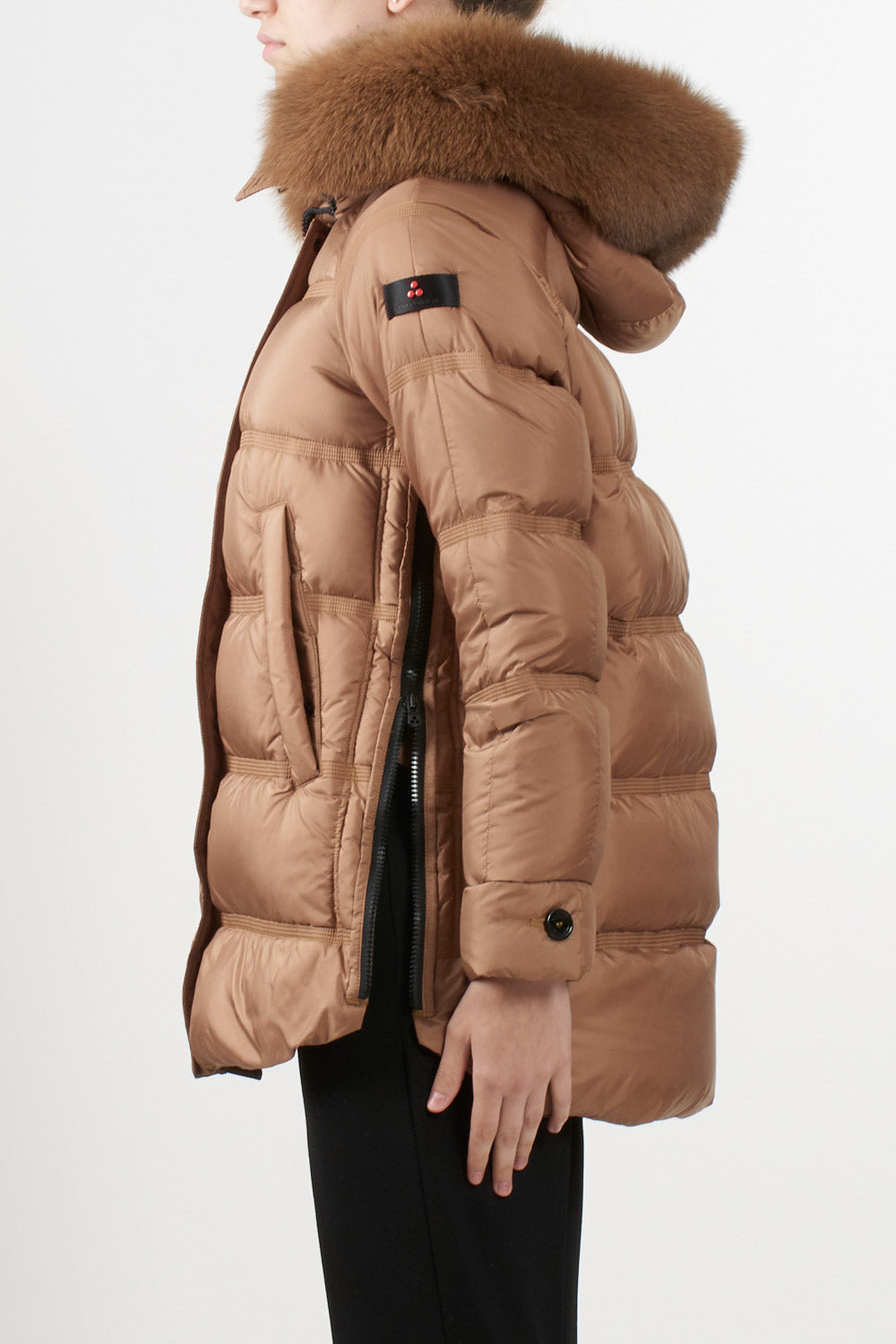 Giubbino Takan di Peuterey in tessuto super-light dalla struttura super compatta, apertura con zip laterali, Cappuccio a collo alto con pelliccia di volpe staccabile, coulisse, tasche a filetto, chiusura con zip nascosta a doppio cursore, patta e bottoni, estremamente morbido e idrorepellente.