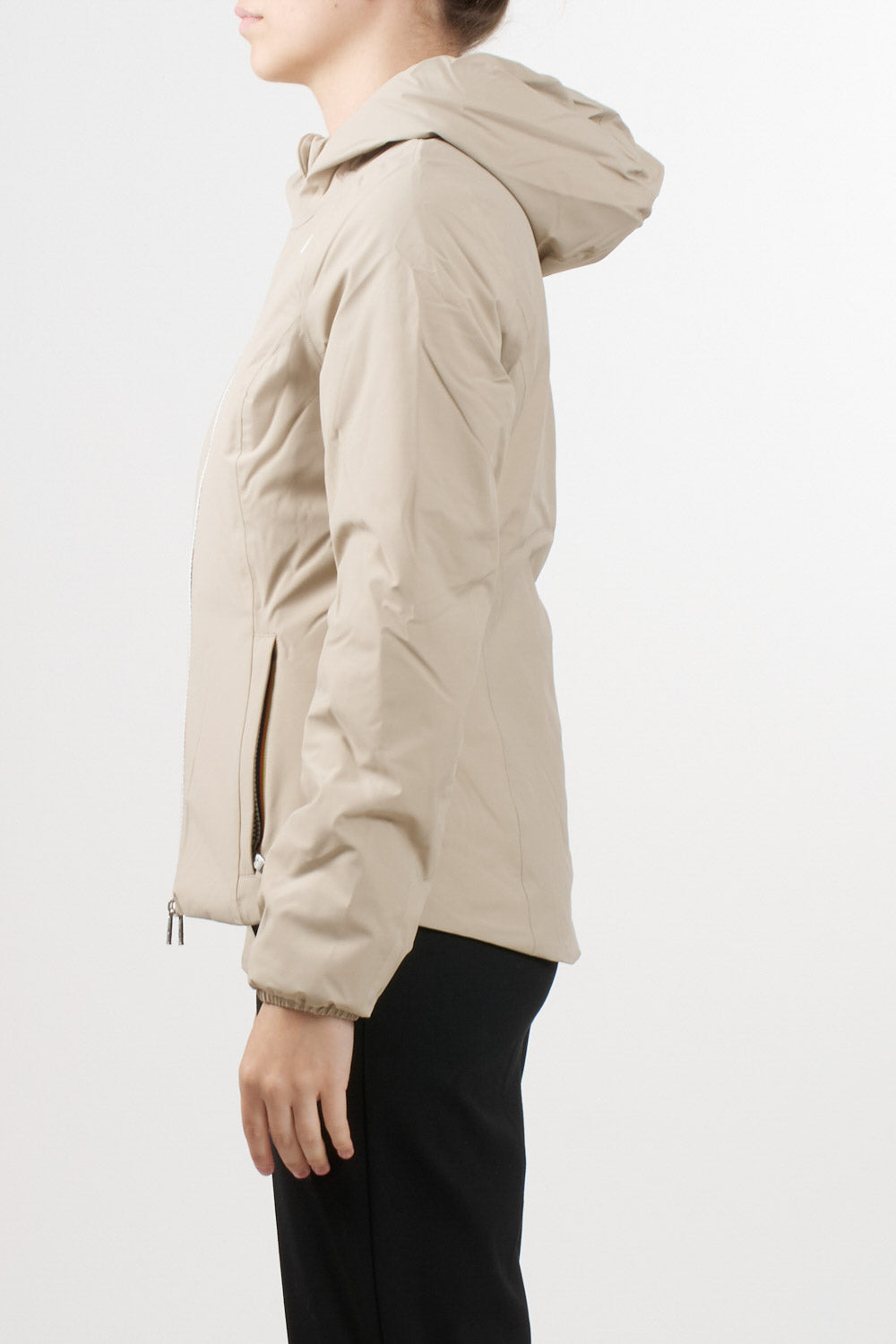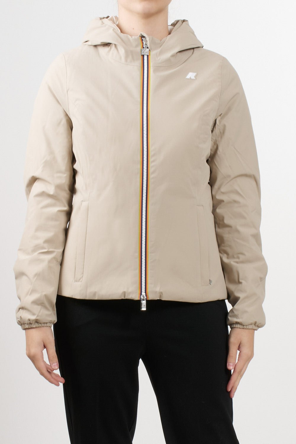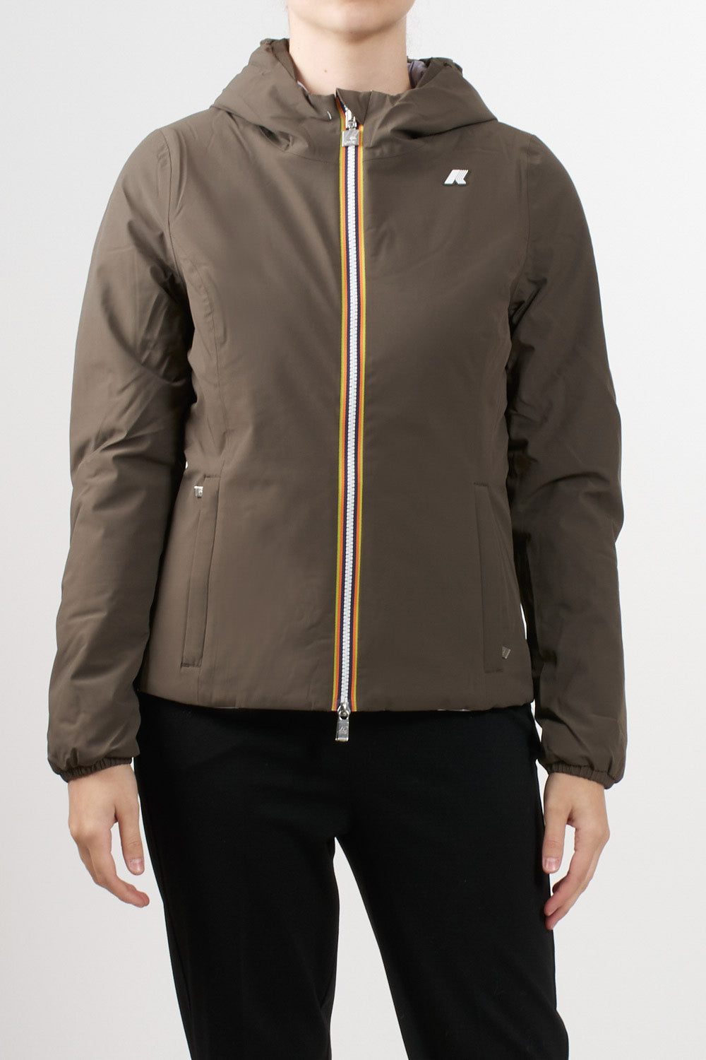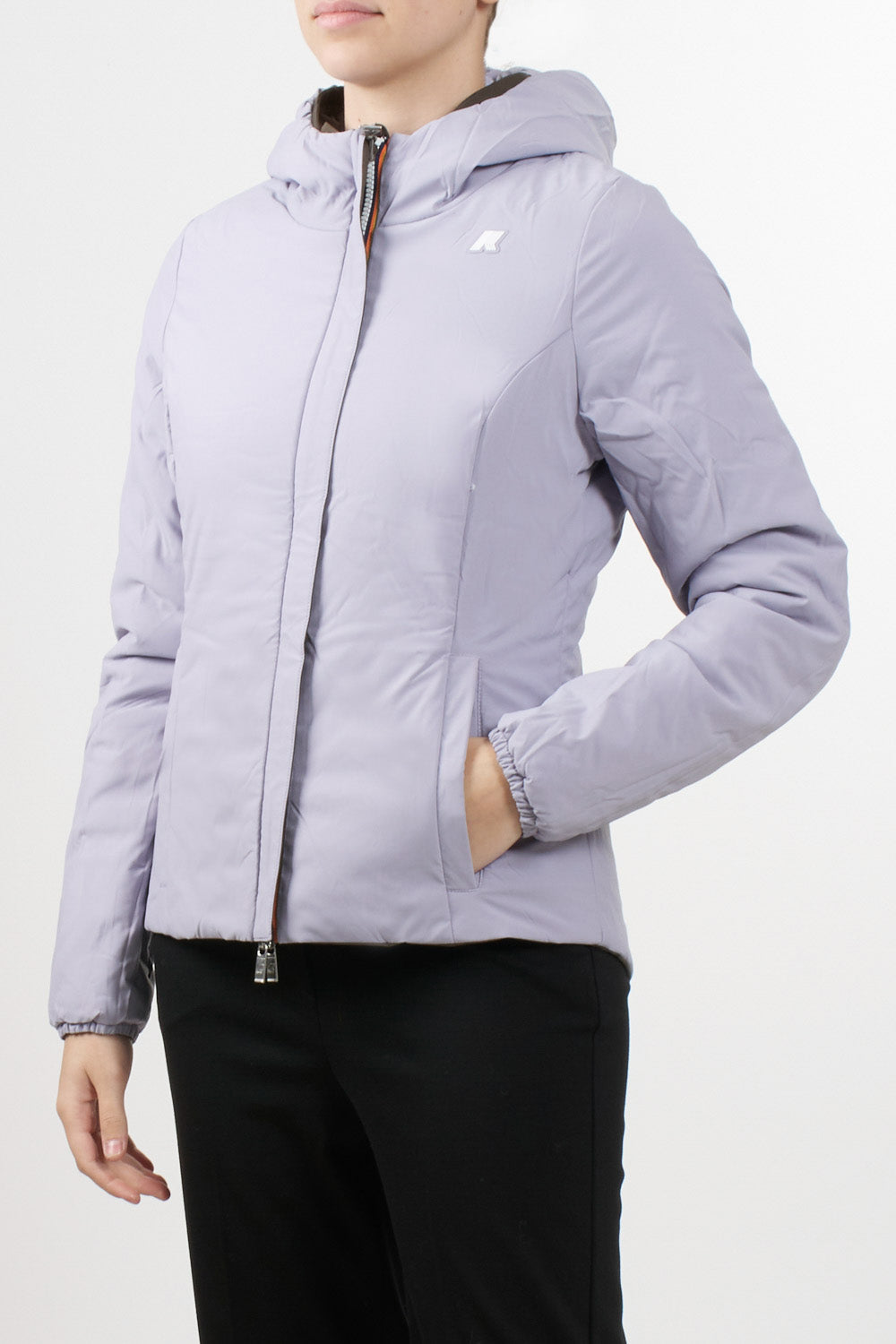 Giubbino Lily di K-way dalla linea slim, design reversibile che combina un lato in poliestere elasticizzato impermeabile e un lato in poliestere antivento dal colore a contrasto,imbottitura in ovatta, cuciture termonastrate isolano dal freddo, cappuccio regolabile con corda elastica, chiusura con zip, tasche laterali