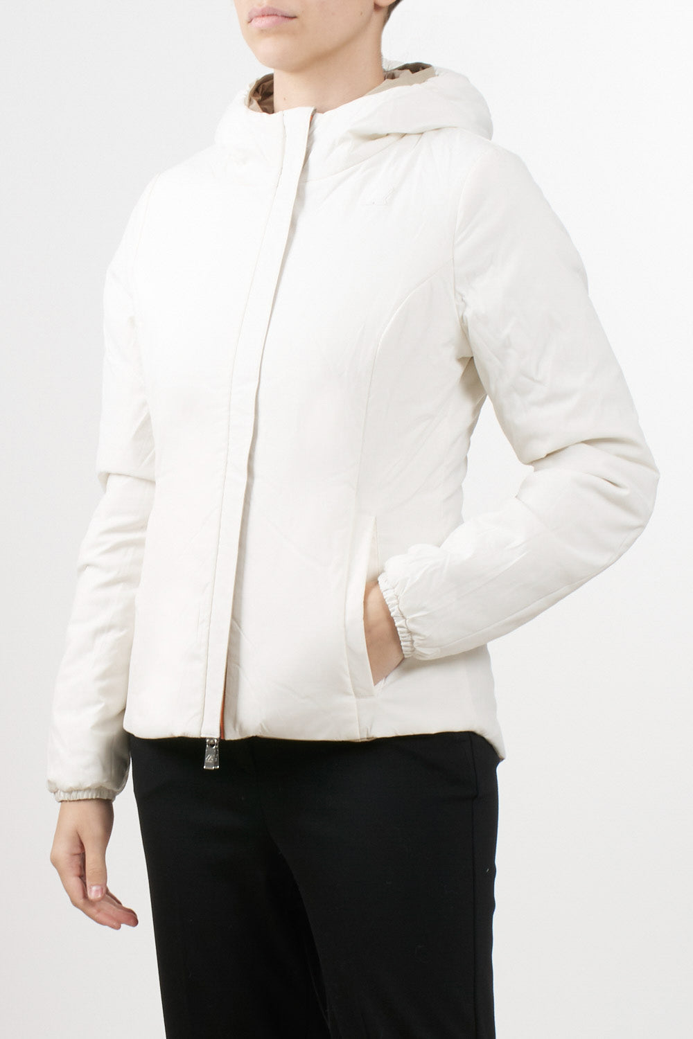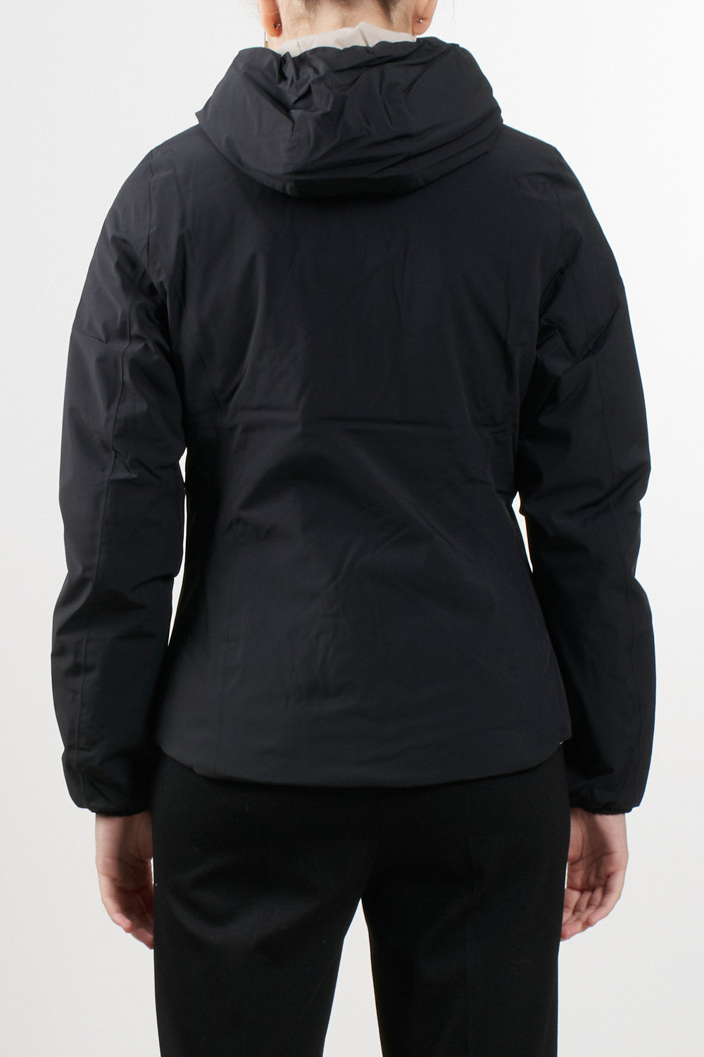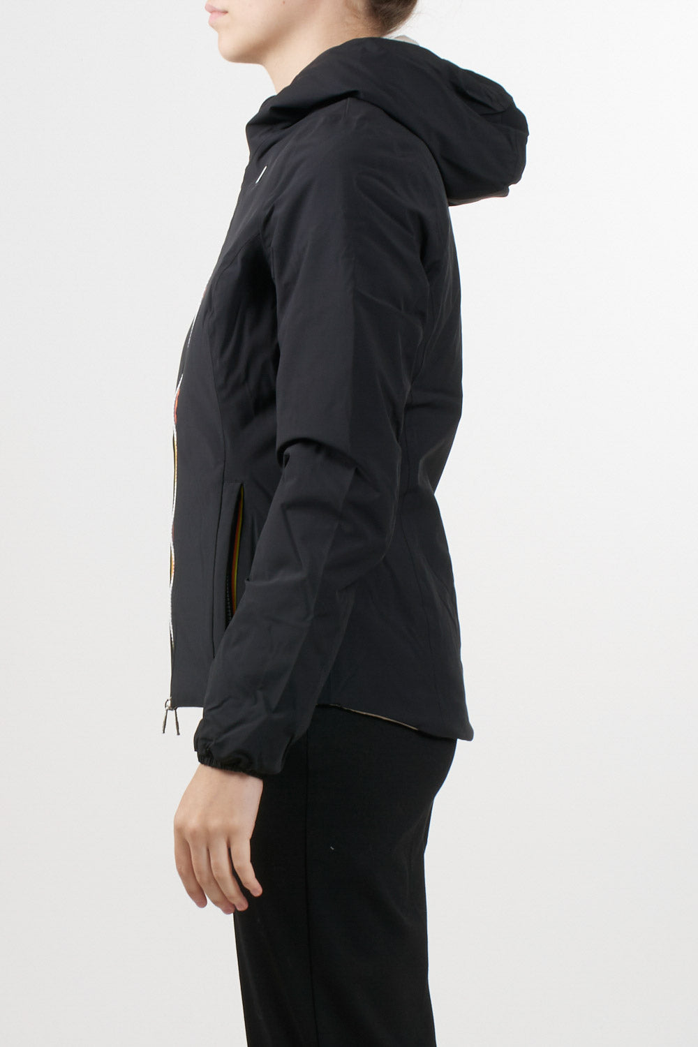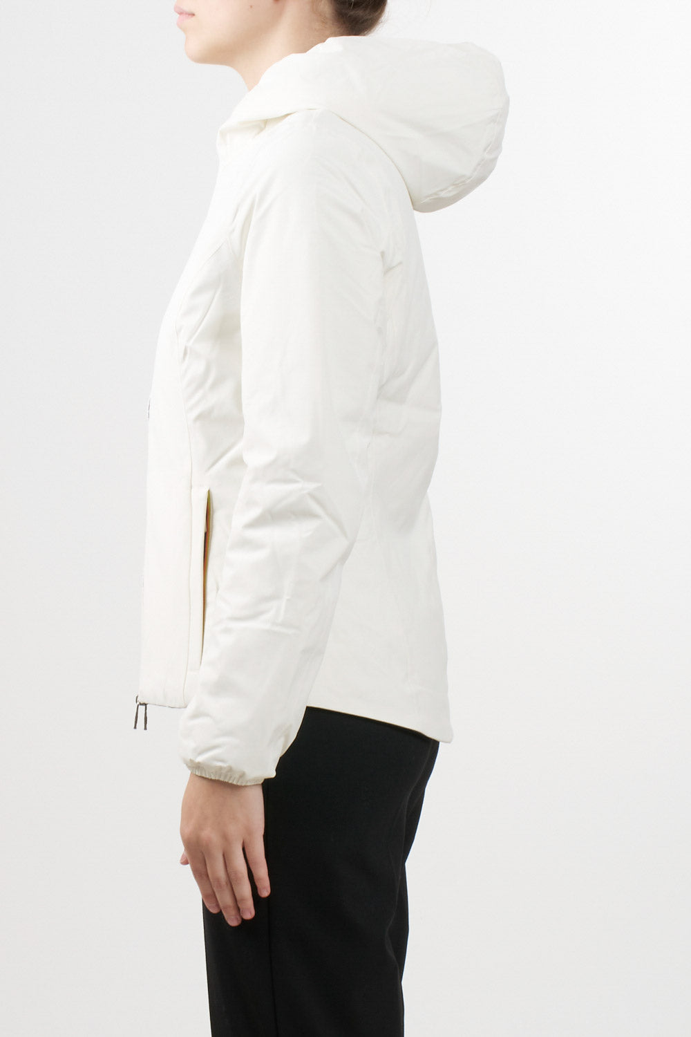 Giubbino Lily di K-way dalla linea slim, design reversibile che combina un lato in poliestere elasticizzato impermeabile e un lato in poliestere antivento dal colore a contrasto,imbottitura in ovatta, cuciture termonastrate isolano dal freddo, cappuccio regolabile con corda elastica, chiusura con zip, tasche laterali