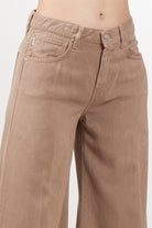 Jeans modello wide leg di Vicolo, cinque tasche con vita alta e gamba extra-lunga valorizza la silhouette con un fit morbido e linee pulite, chiusura frontale con zip e bottone, passanti in vita, salpa logata sul retro