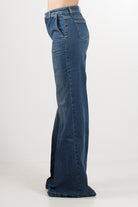 Jeans Elena a vita alta di Vicolo, dal taglio ampio e dritto, lavaggio medio, tasche laterali, tasche sul retro, salpa logata