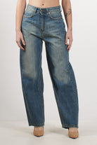 Jeans Phobe a vita media di Vicolo, dal taglio ampio, lavaggio medio, tasche laterali, tasche sul retro, salpa logata