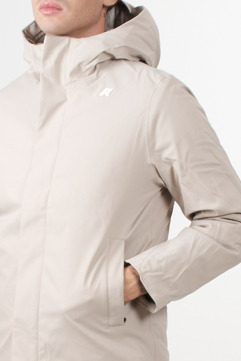Giubbino Kway , pensato per offrire protezione e comfort durante la stagione autunnale e i primi freddi invernali. Realizzata in resistente twill di poliestere impermeabile e antivento, presenta una linea essenziale e una vestibilità regolare che garantisce libertà di movimento. L’imbottitura in PrimaLoft, ottenuta da fibre di poliestere riciclato ad alta capacità isolante, assicura calore medio senza appesantire, mentre la fodera interna in tessuto soffice rende il capo piacevole da indossare. Cappuccio , zip coperta da patta, cuciture termonastrate e dettagli tecnici completano il look pratico e moderno.