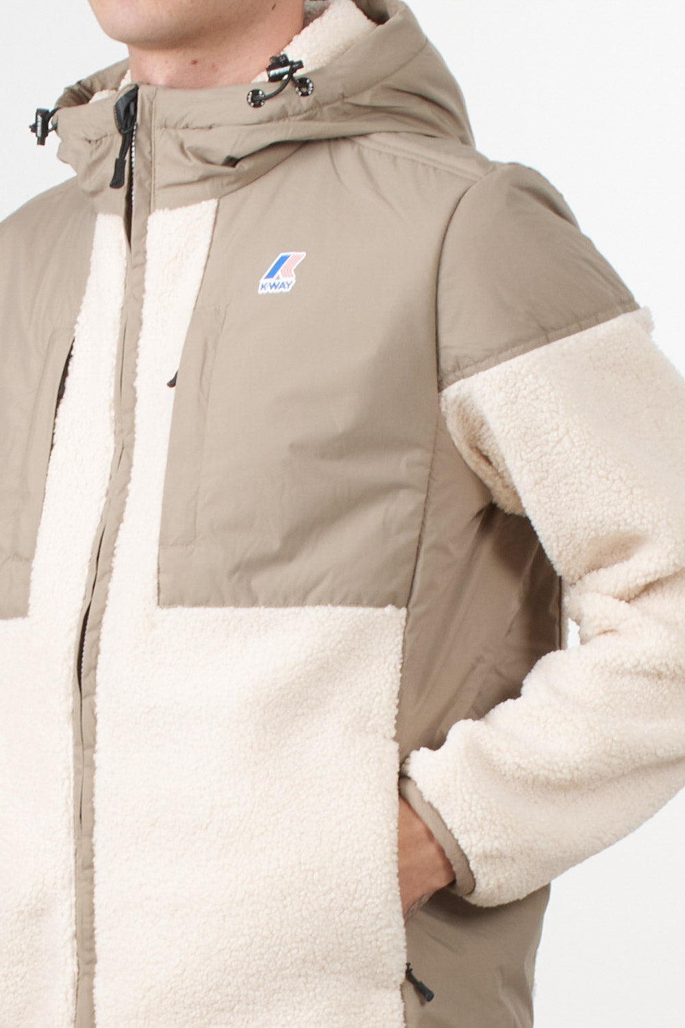 Giacca corta dal look contemporaneo e funzionale, pensata per affrontare le stagioni intermedie e i primi freddi. Realizzata in morbido tessuto effetto sherpa con inserti in nylon micro ripstop riciclato, combina calore, traspirabilità e resistenza all’acqua. L’interno è imbottito in fibra PrimaLoft®, leggera e altamente isolante, che garantisce comfort termico senza appesantire. Il design è completato da cappuccio regolabile, chiusura con zip e tasche multiple con chiusura a zip per la massima praticità.