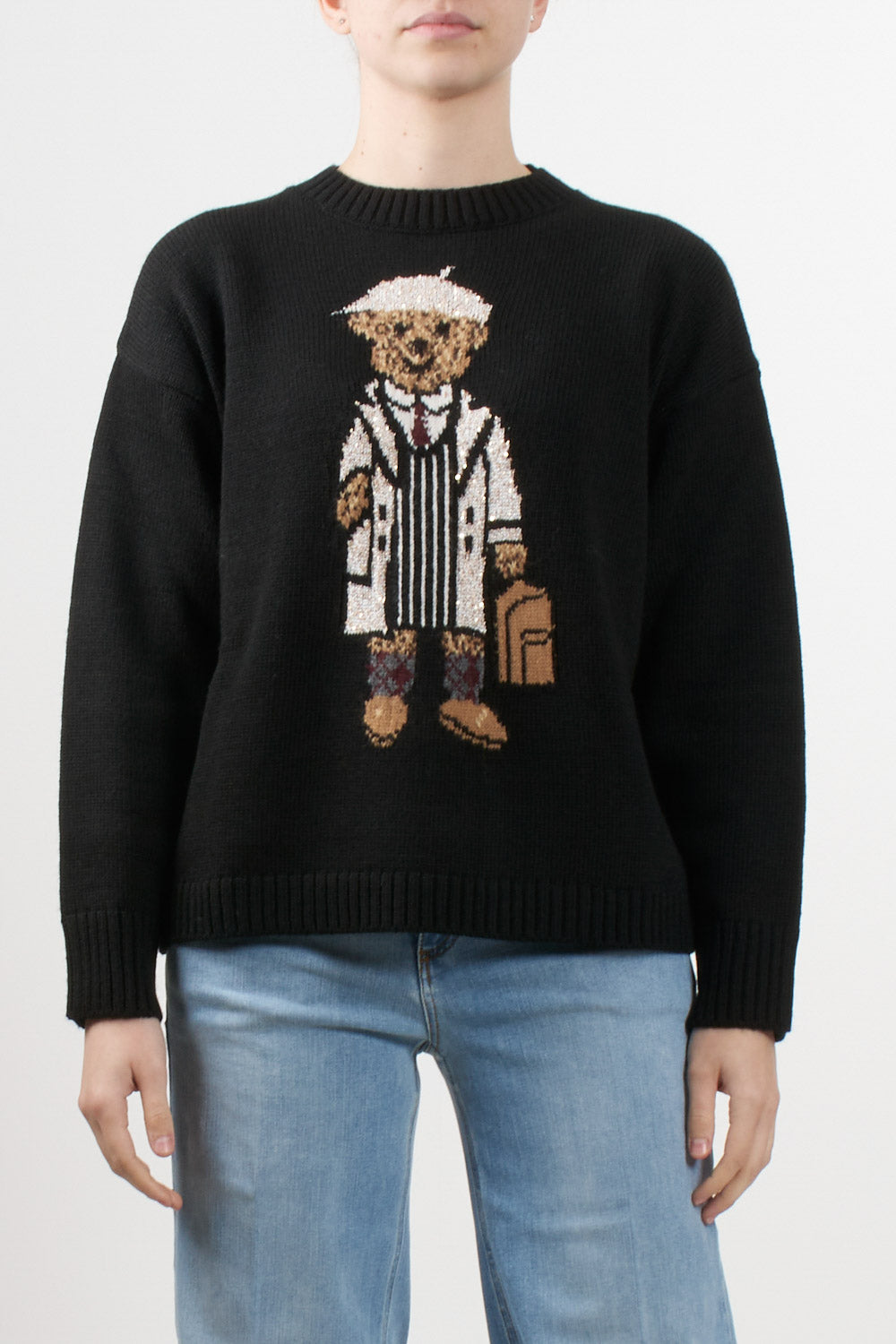 Scollo rotondo, maniche lunghe, stampa orsetto sul davanti