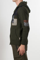 Cardigan in lana con cappuccio, caratterizzato da inserti patchwork multicolore realizzati con tessuti fantasia effetto tweed e check. Il modello presenta chiusura frontale con bottoni, bordi a coste e una costruzione calda e avvolgente tipica dell’artigianato italiano. Un capo distintivo che unisce comfort e stile contemporaneo.