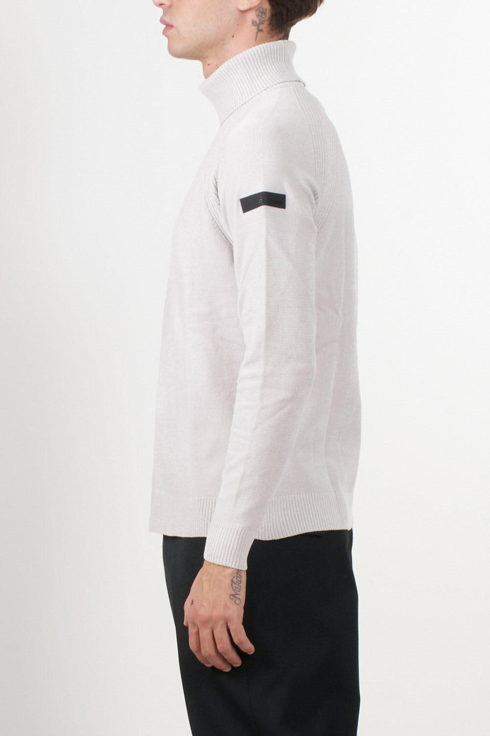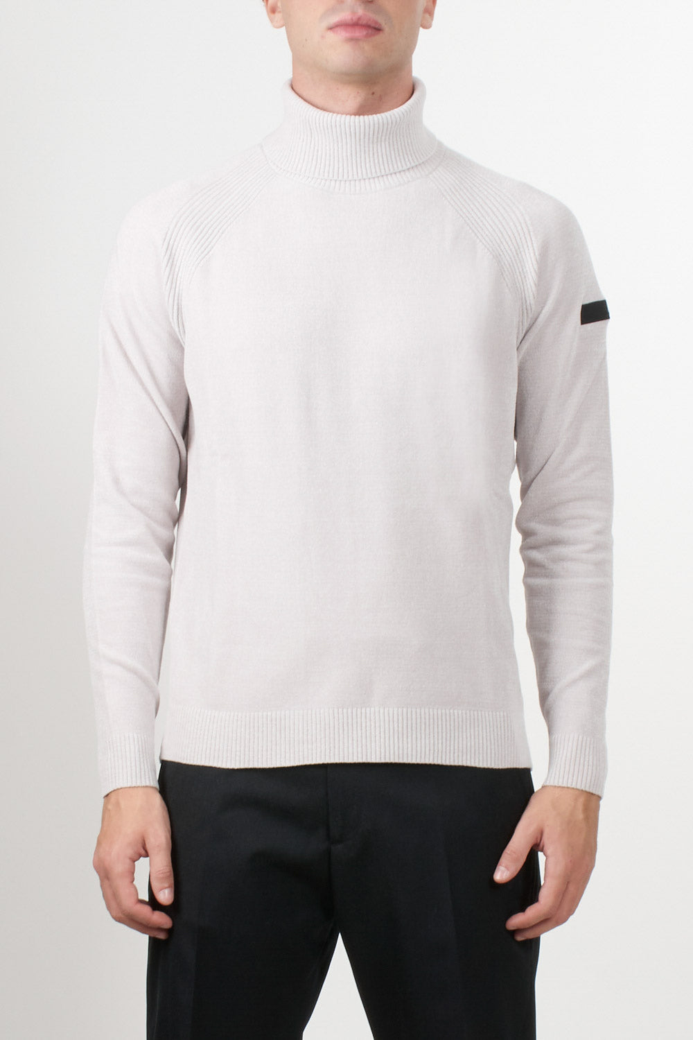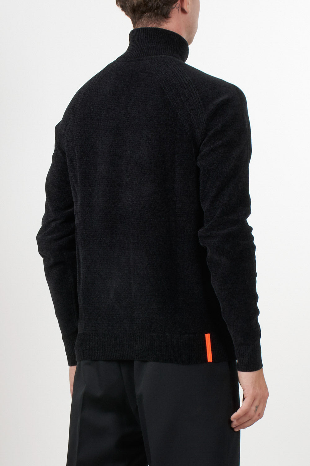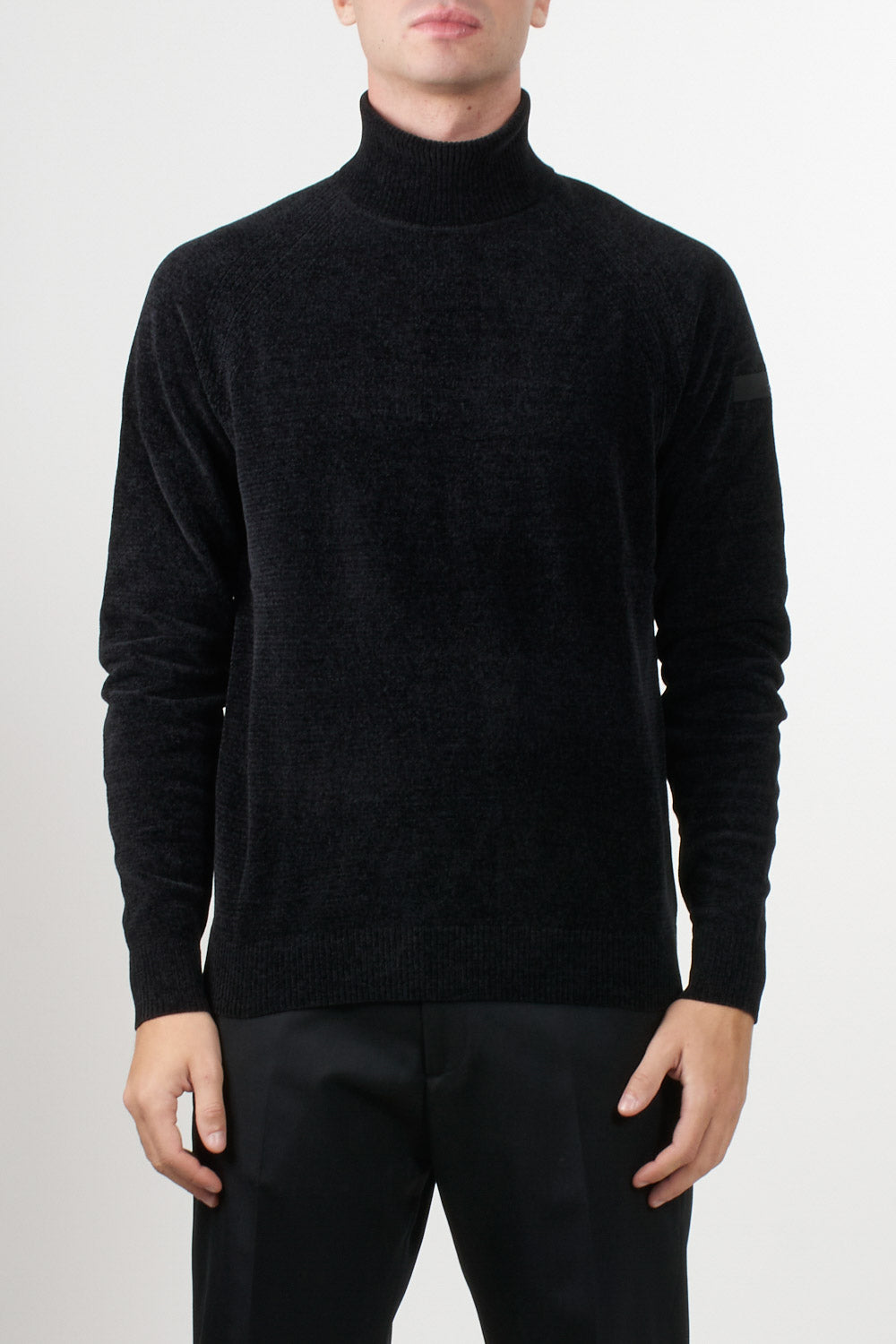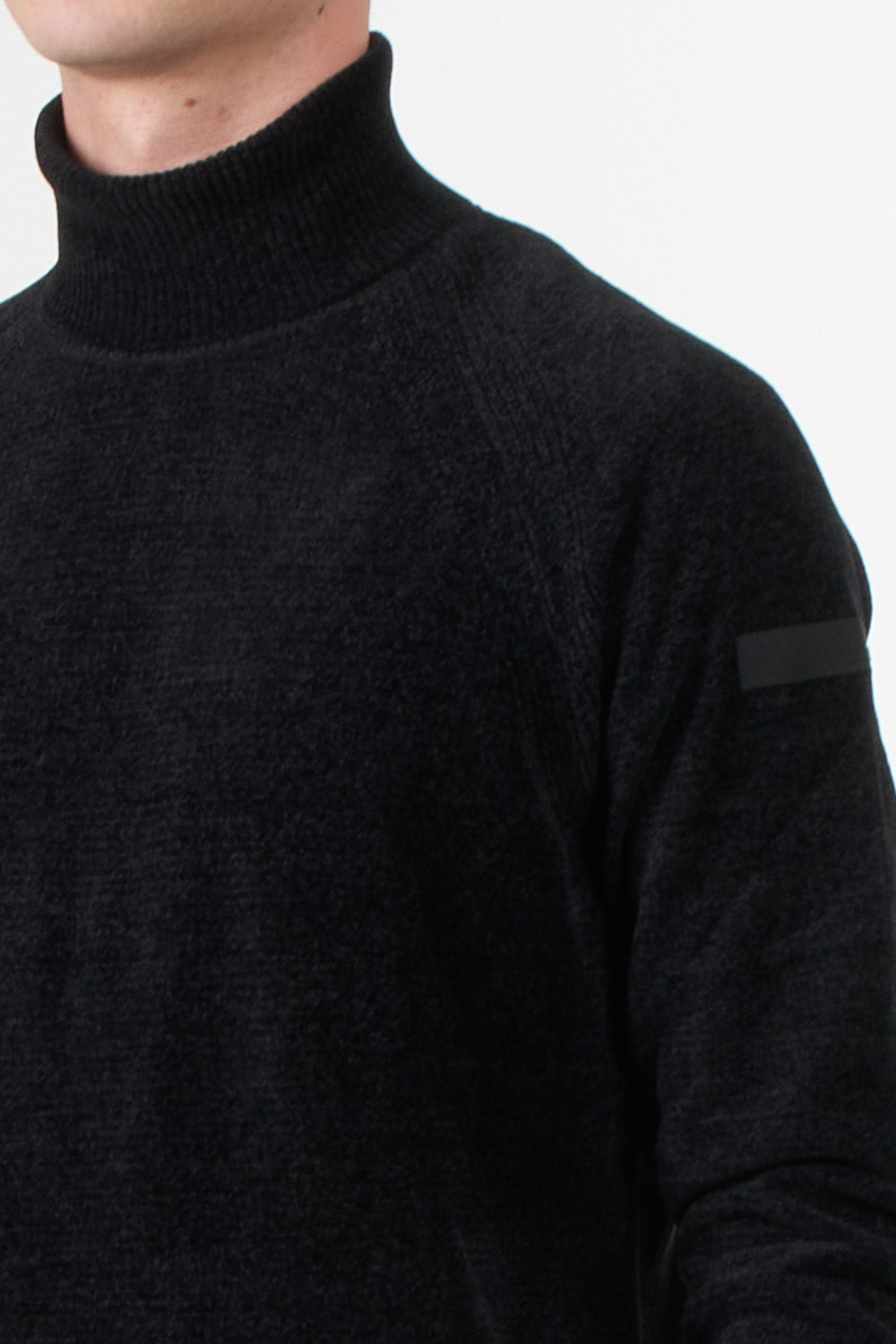 Dolcevita dal design essenziale e contemporaneo, realizzato in morbida ciniglia stretch, dal touch vellutato, il modello presenta lavorazione a coste inglesi sul collo, sui polsini e il fondo, logo sulla manica. Un capo versatile, ideale per look casual raffinati o abbinamenti più eleganti.
