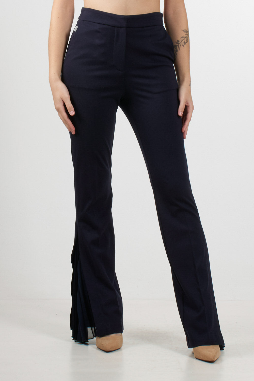 Pantalone svasato con dettaglio plissé