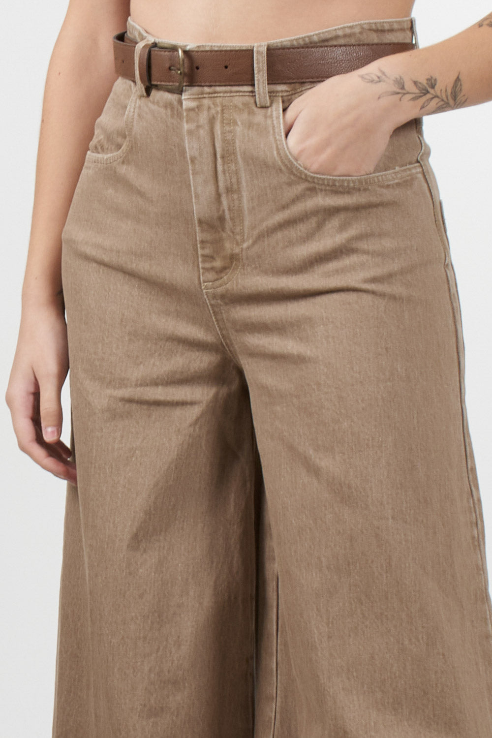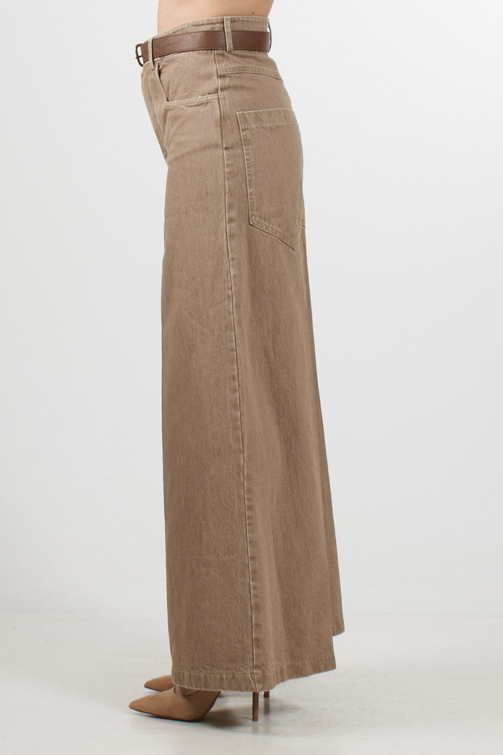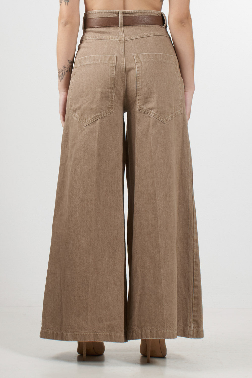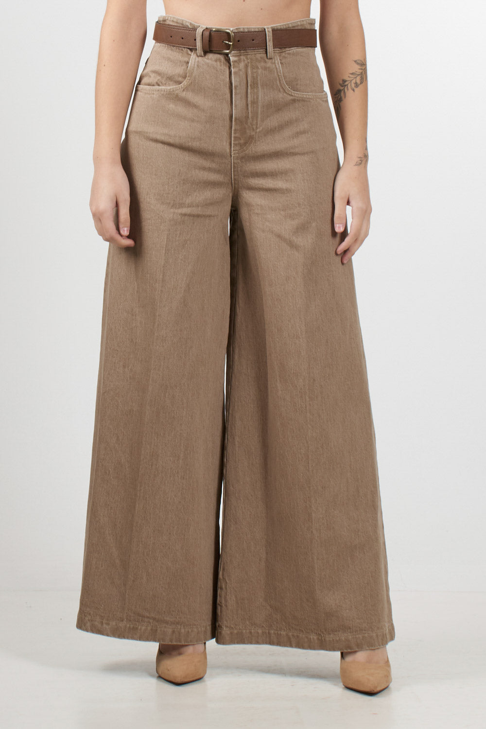Pantalone donna a gamba larga di Tensione In con vita alta e linea scivolata, cintura coordinata con fibbia in metallo che definisce il punto vita, tasche laterali, tasche sul retro