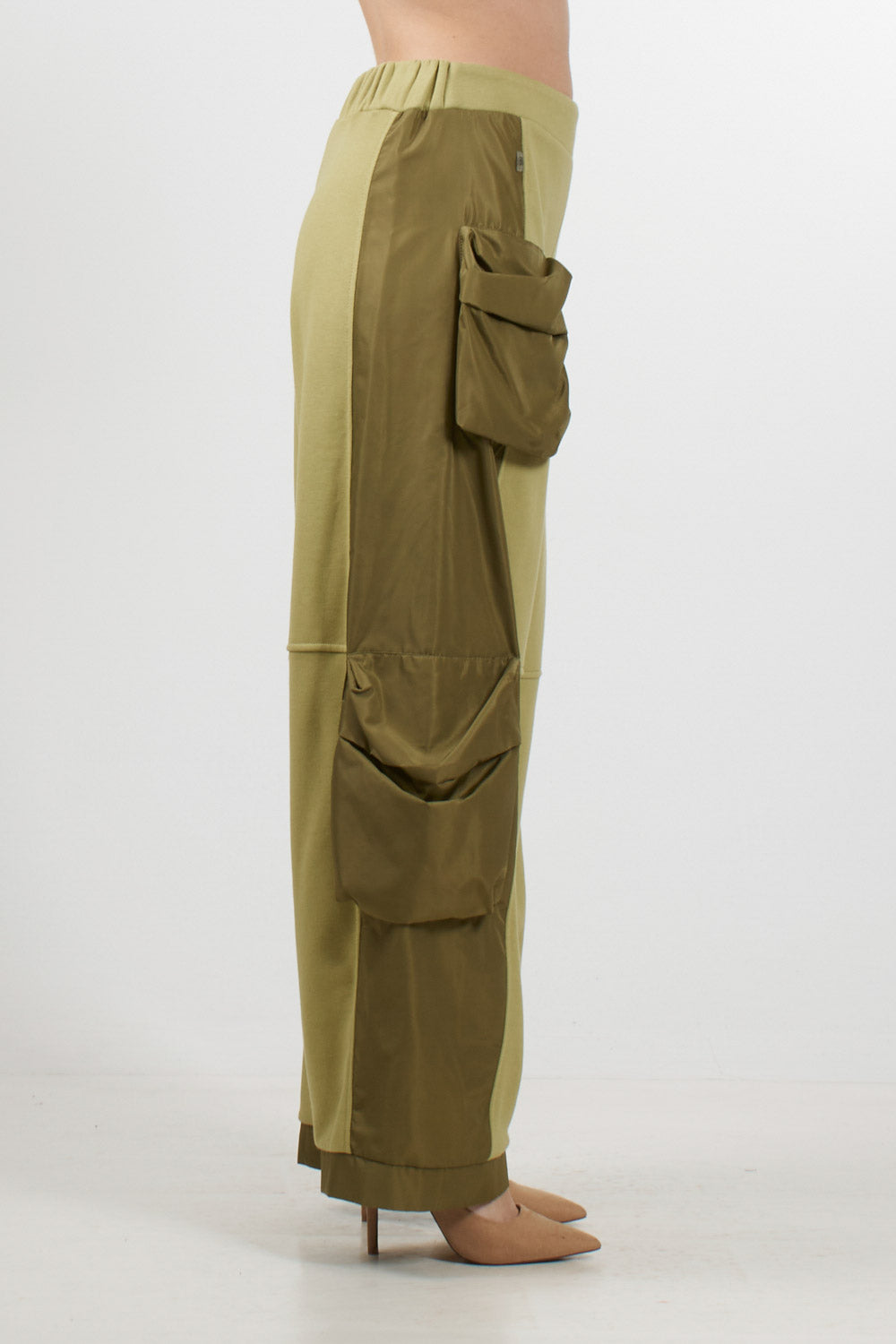 Pantalone cargo dI jIJIL dallo stile contemporaneo, caratterizzato da ampie tasche applicate sui lati e dettagli in tessuto tecnico a contrasto. La linea morbida e il taglio rilassato lo rendono un capo versatile e moderno, perfetto per look casual-chic.