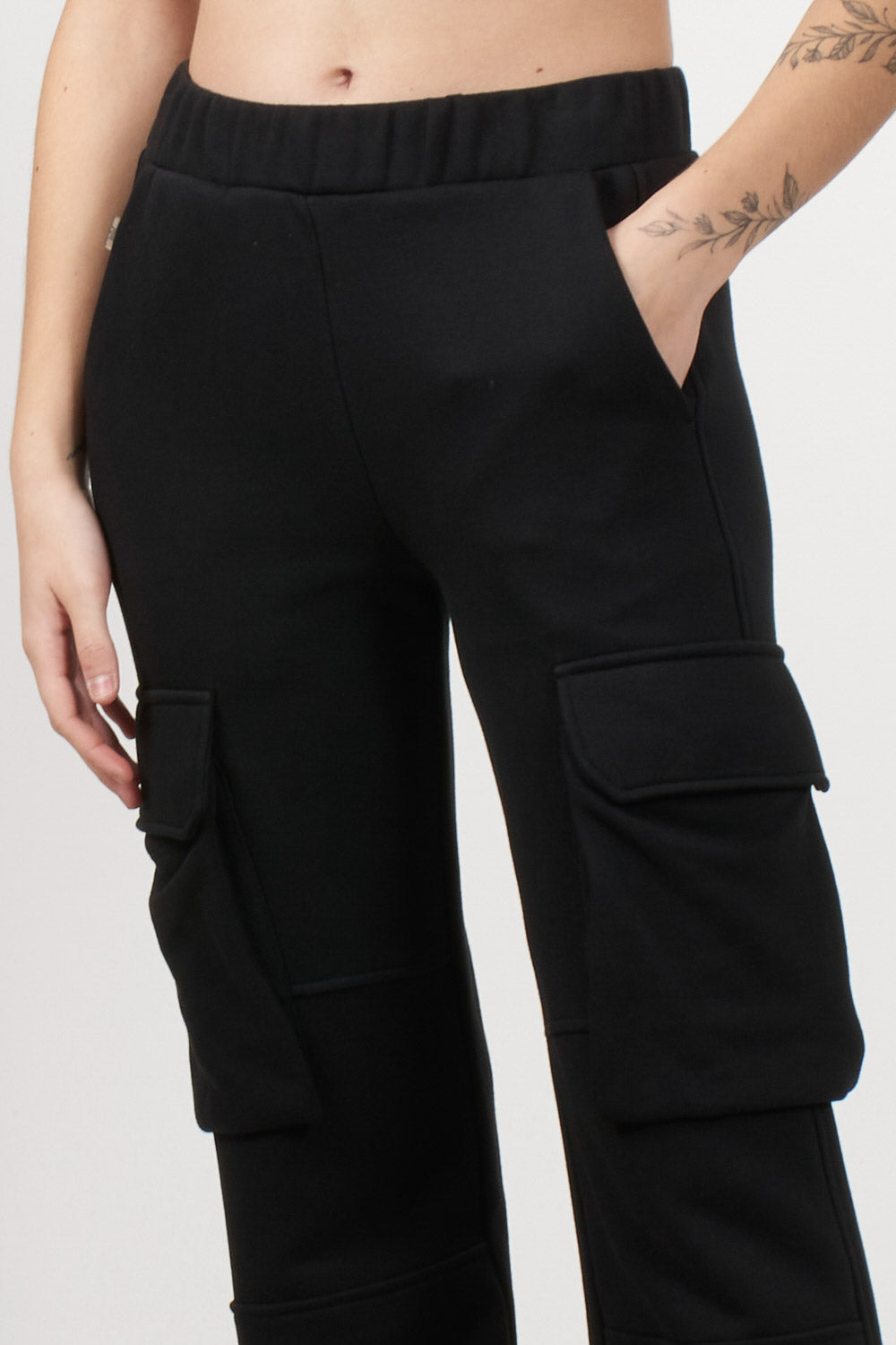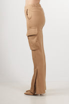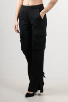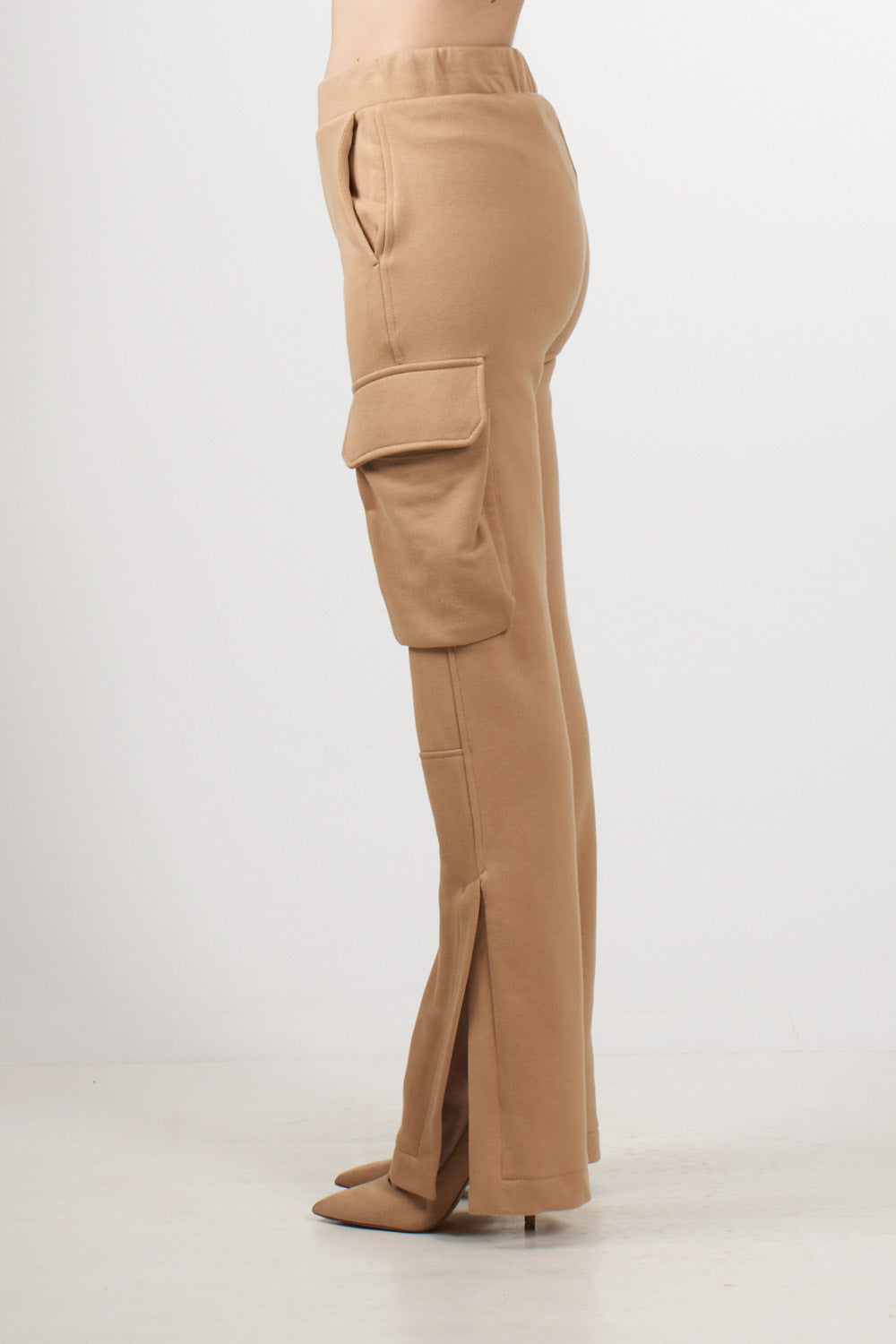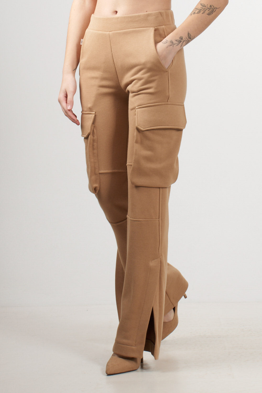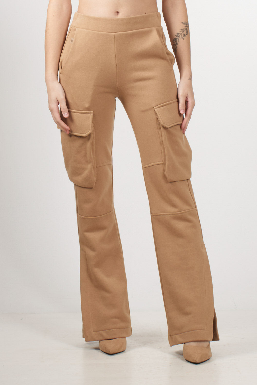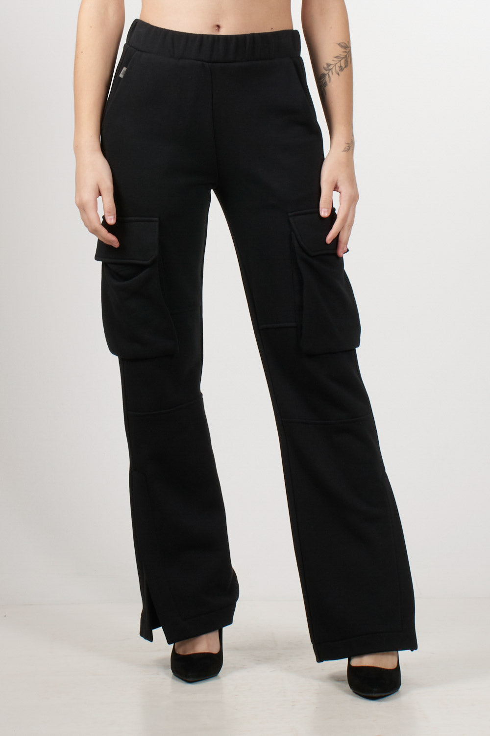 Pantalone cargo Jijil dalla linea moderna , con vita media e gamba svasata. Il modello presenta ampie tasche applicate laterali, spacchi laterali al fondo e comoda fascia elastica in vita. Un capo contemporaneo e versatile, perfetto per look casual-chic o street style.
