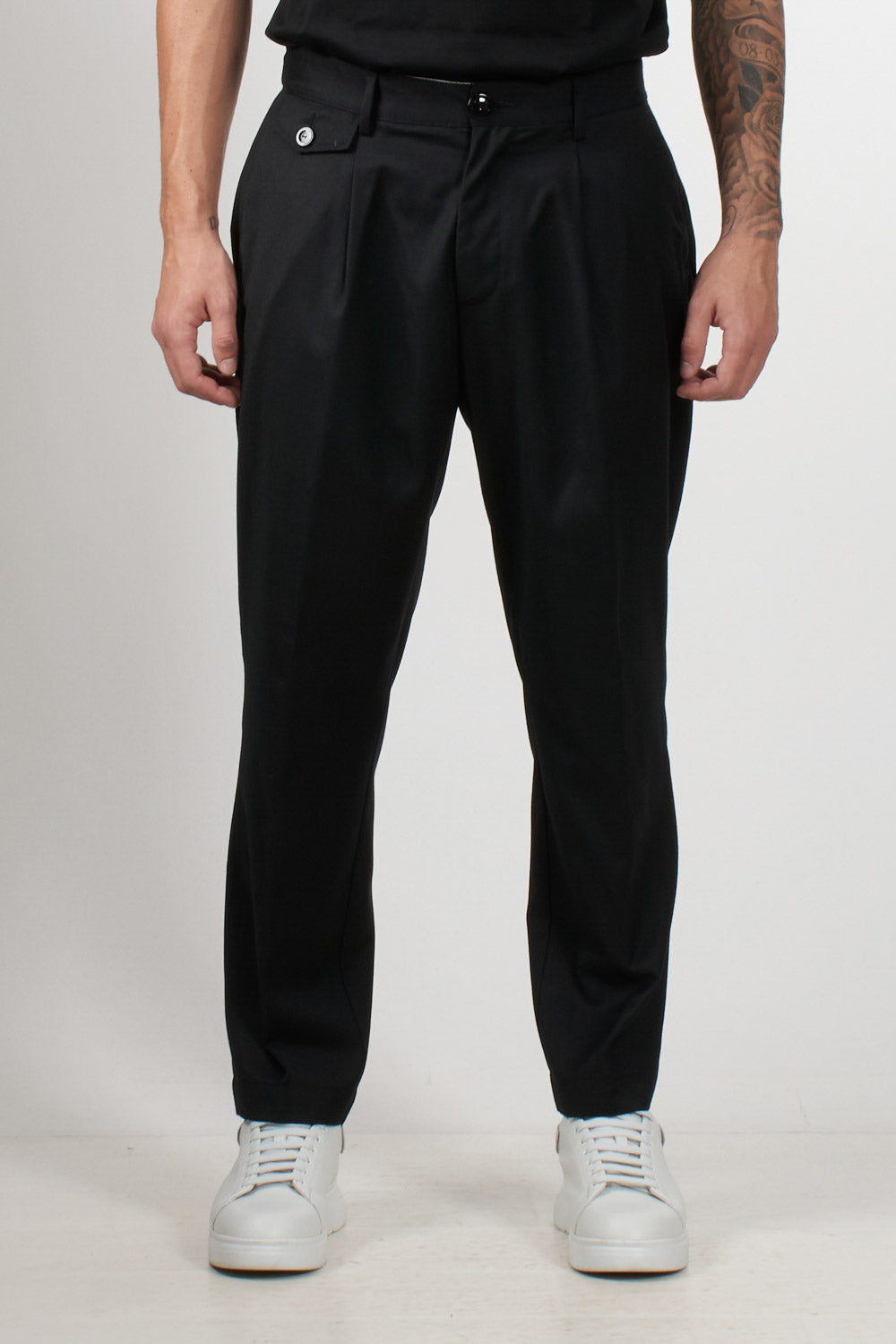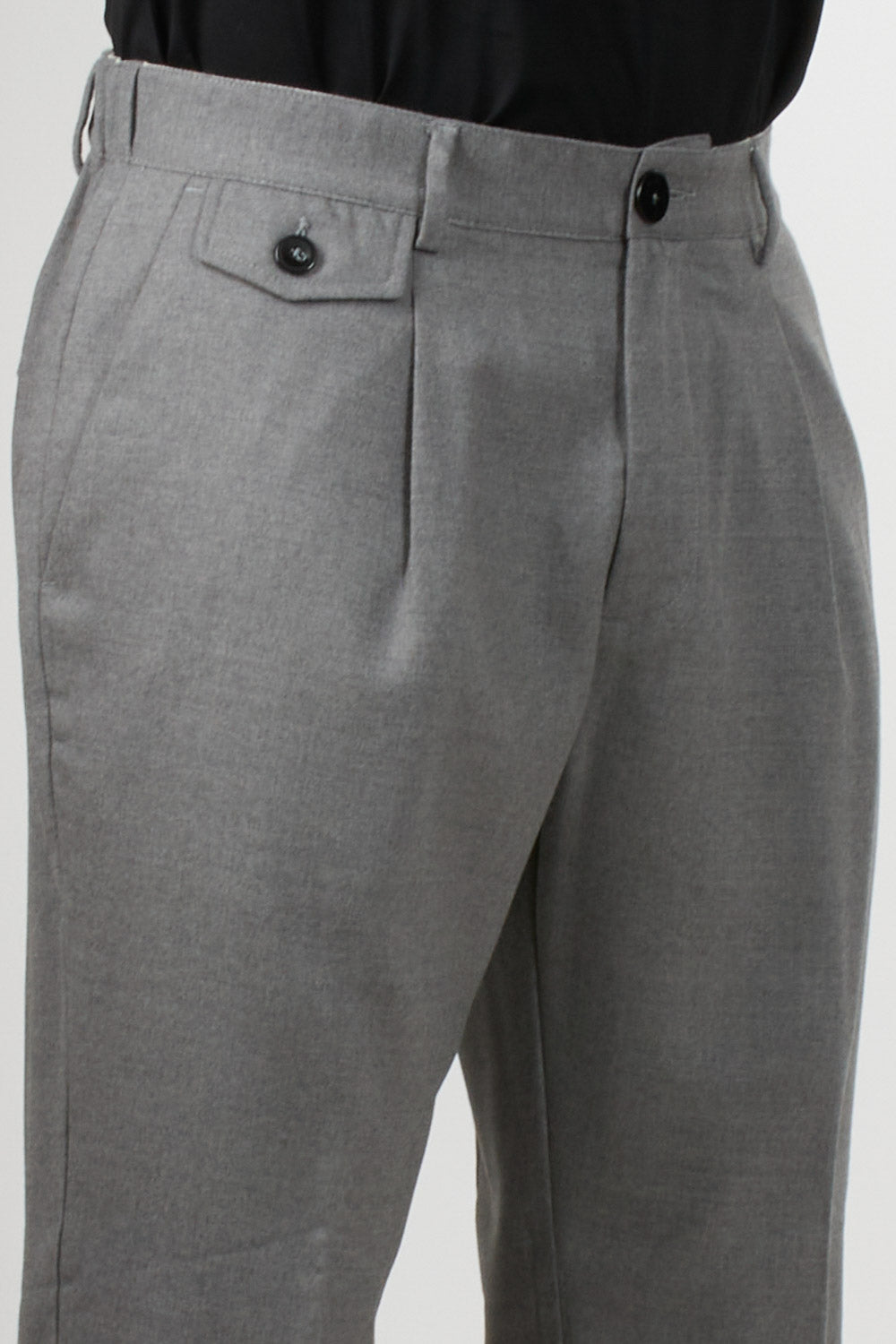 Questi pantaloni firmati PMDS presenta pinces frontali, tasche laterali e posteriori con pattina e bottone, oltre a una piccola tasca con patta sul davanti che aggiunge un tocco contemporaneo. Perfetti per completare outfit casual-chic o look formali