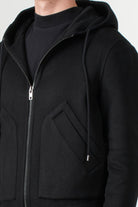 Giubbino Park Place con zip frontale, cappuccio regolabile con coulisse, chiusura con zip a doppio cursore e tasche laterali applicate. Polsini e fondo in maglia a costine completano il design