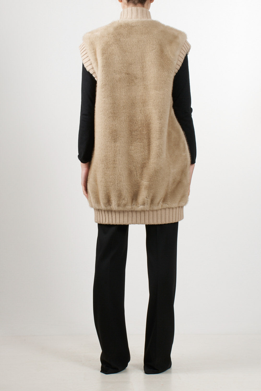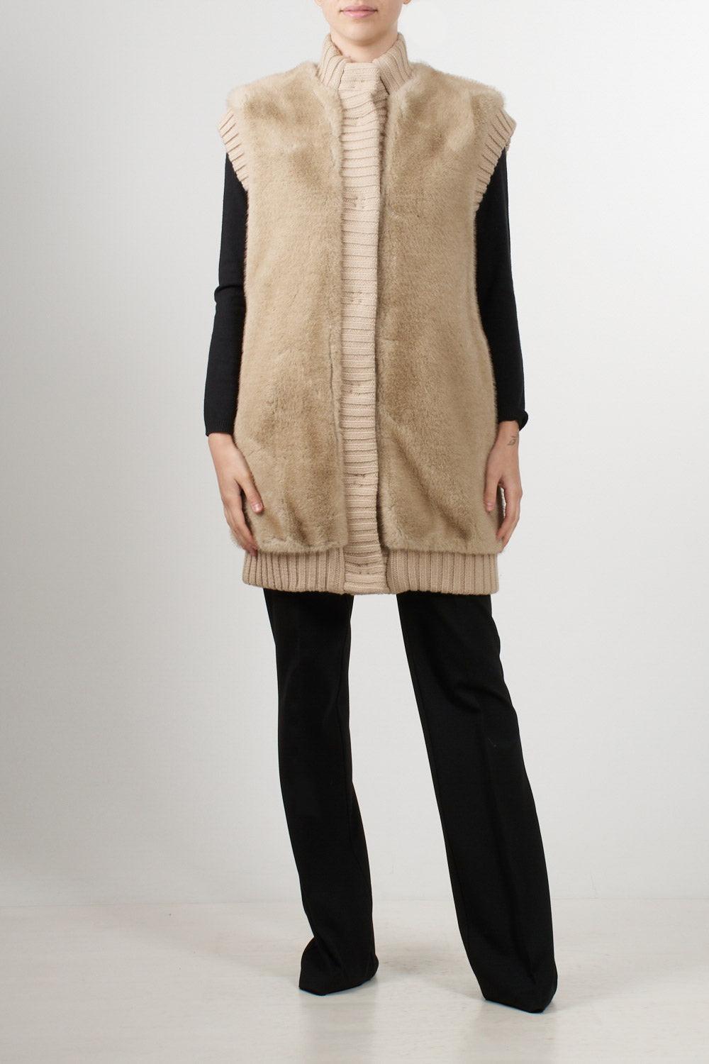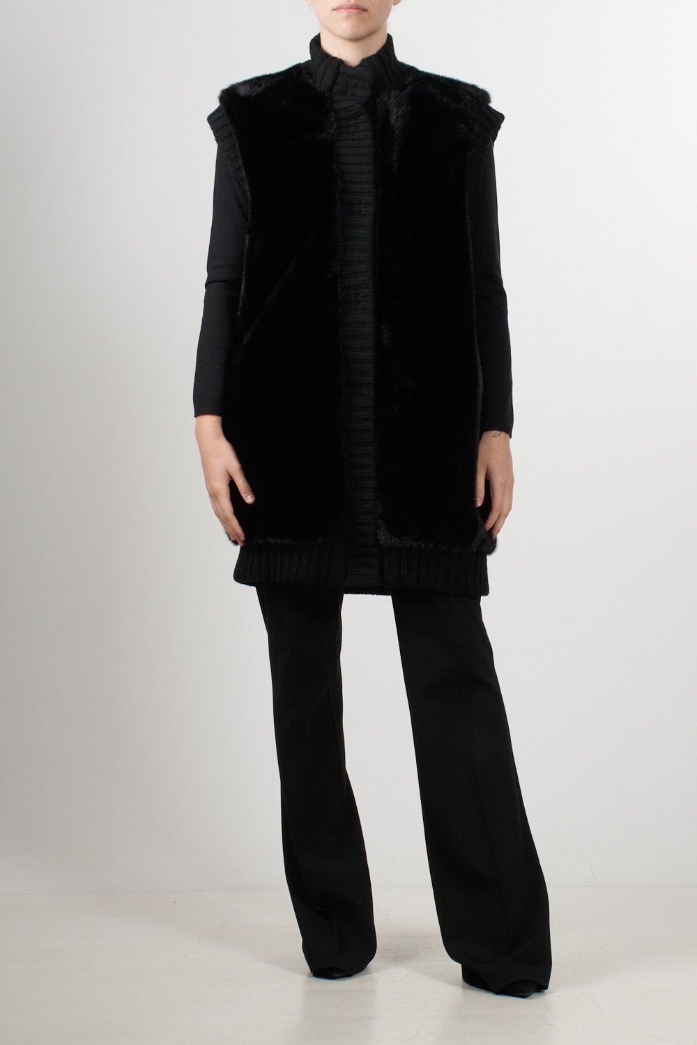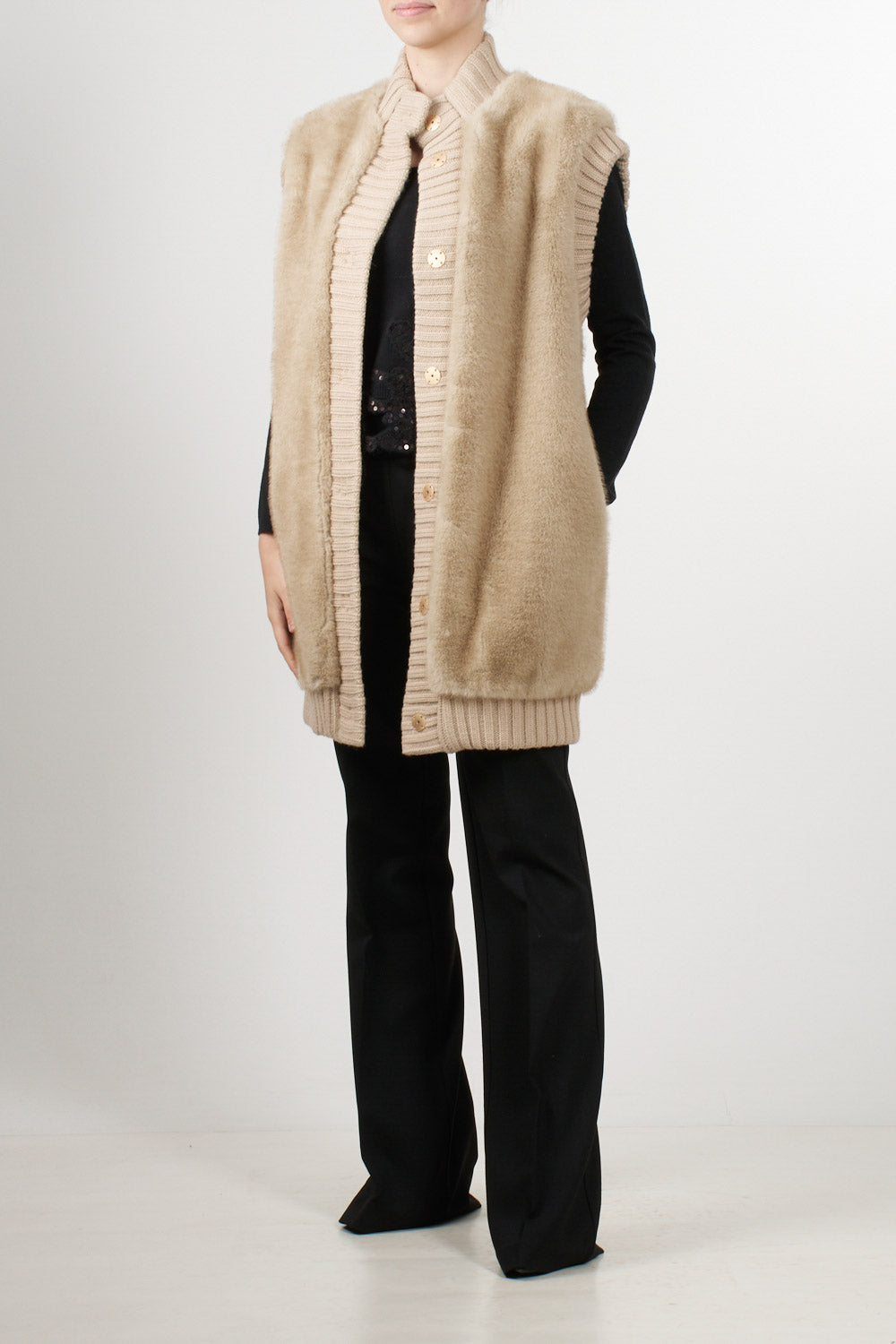 Gilet lungo di Pinko dalla linea dritta realizzato in morbido tessuto Aspen dall’effetto pelliccia, piacevole al tatto e perfetto per le giornate più fresche. Il design è valorizzato da dettagli in costa di maglia sul collo montante, sull’apertura frontale nascosta e sul giromanica. Un capo versatile che unisce comfort e stile, ideale per la mezza stagione o da indossare sopra cappotti leggeri.
