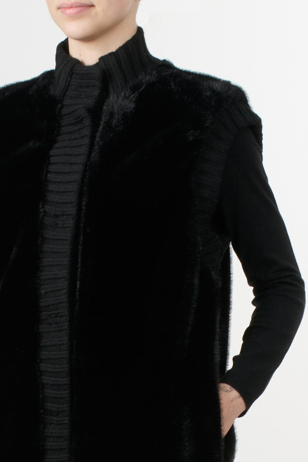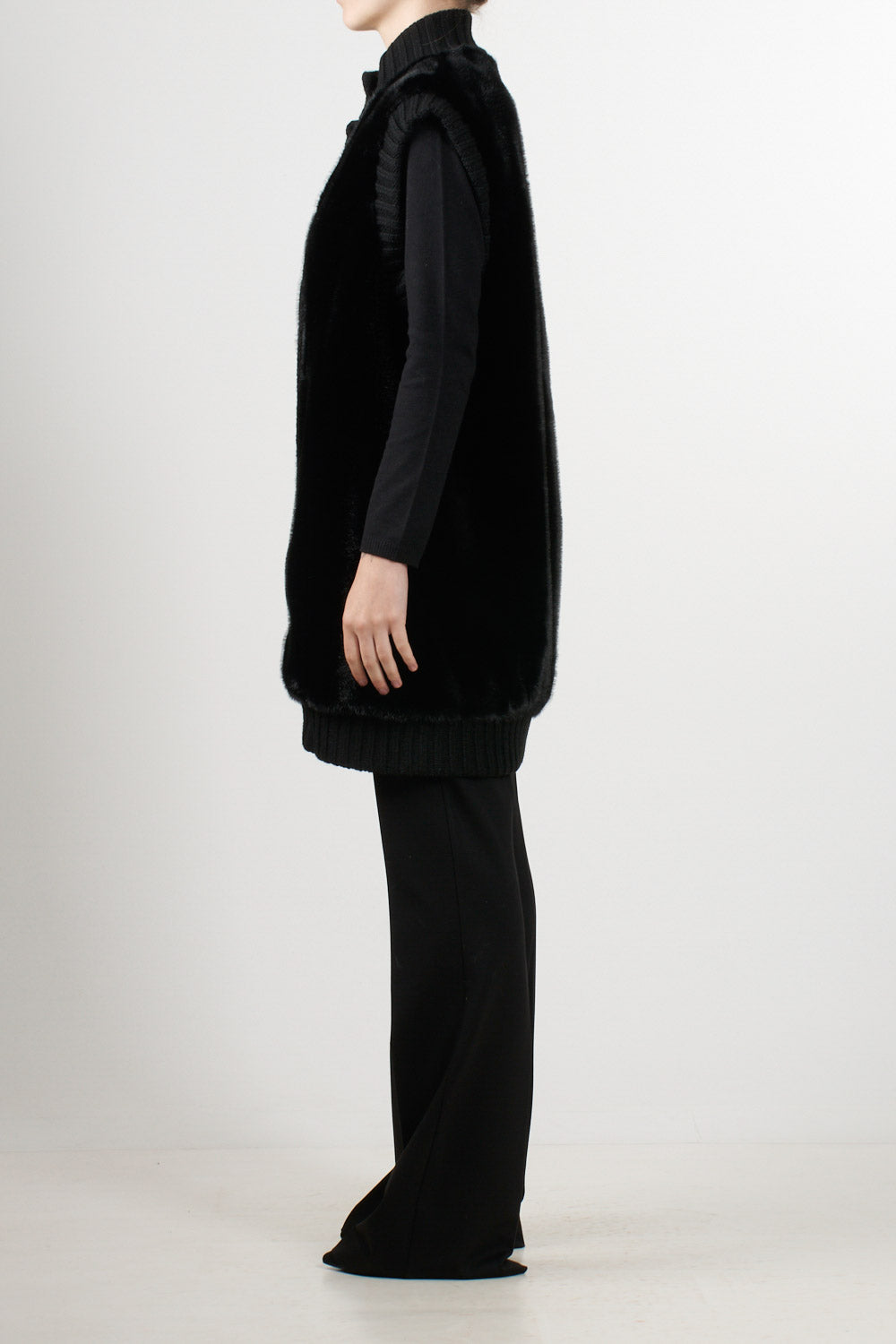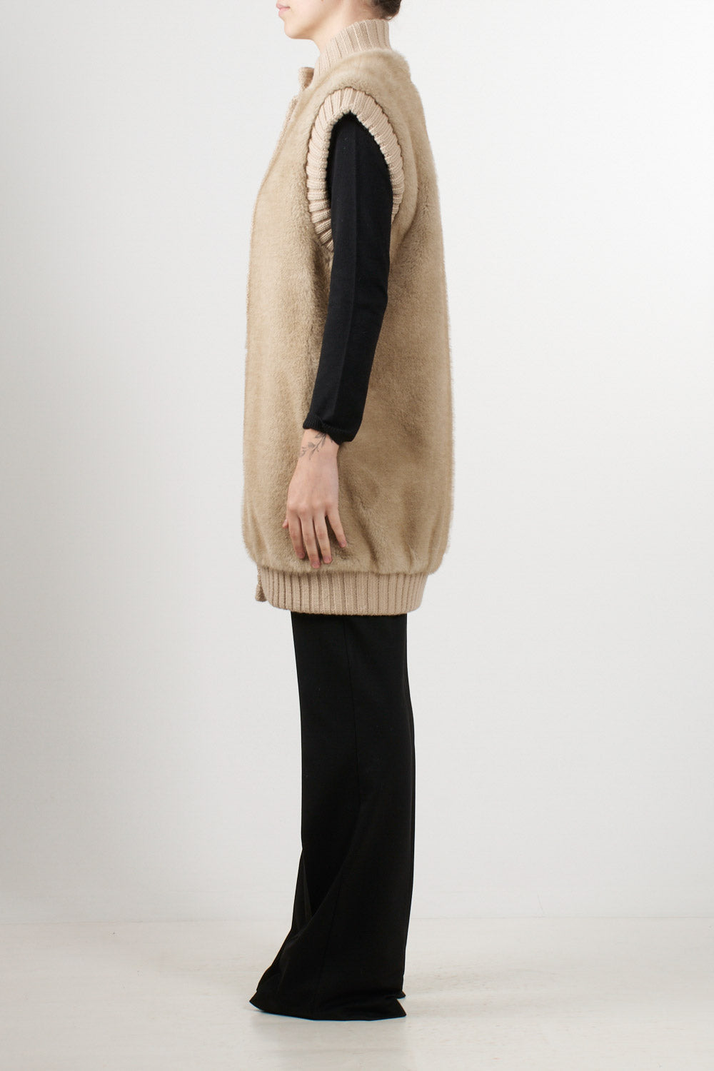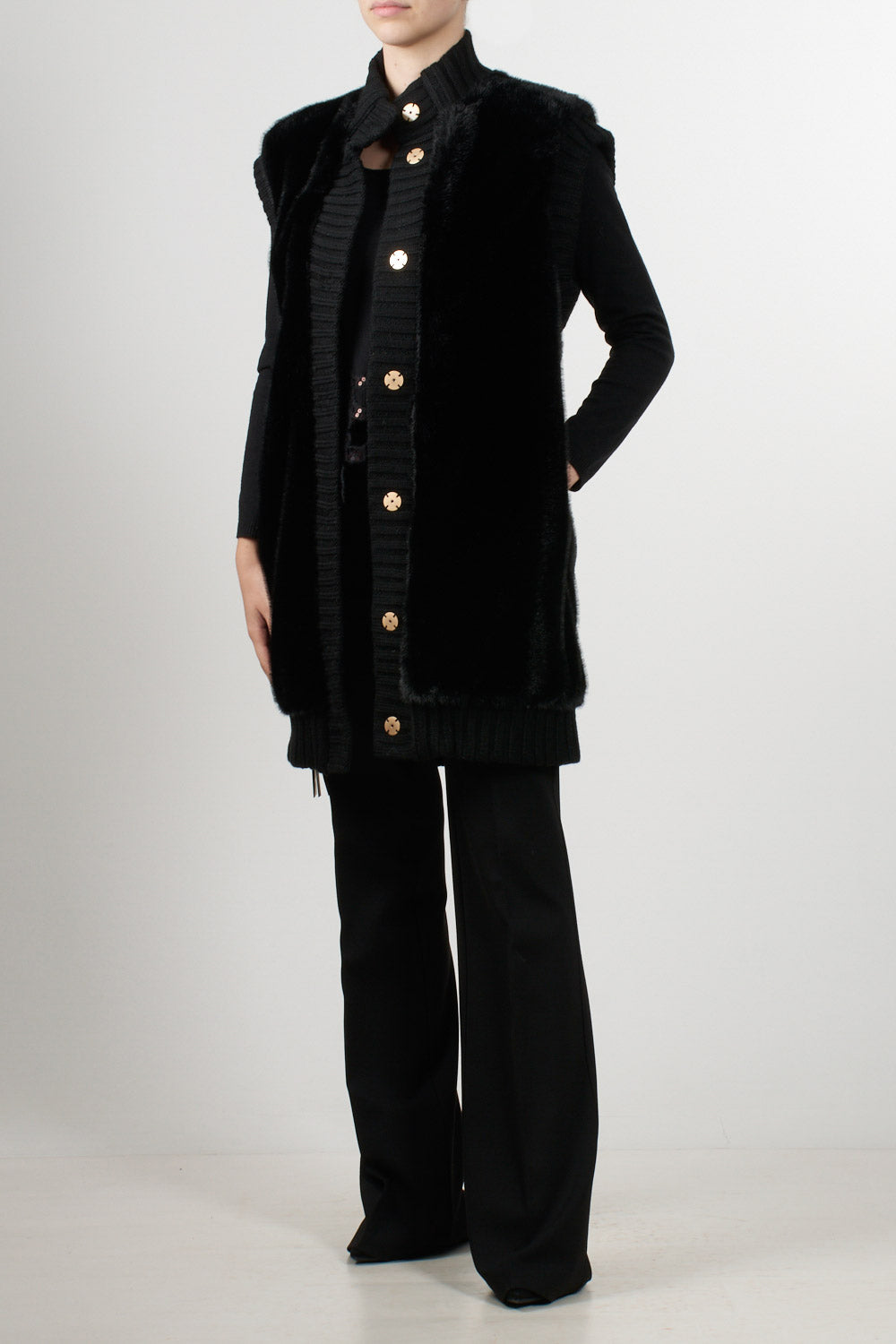Gilet lungo di Pinko dalla linea dritta realizzato in morbido tessuto Aspen dall’effetto pelliccia, piacevole al tatto e perfetto per le giornate più fresche. Il design è valorizzato da dettagli in costa di maglia sul collo montante, sull’apertura frontale nascosta e sul giromanica. Un capo versatile che unisce comfort e stile, ideale per la mezza stagione o da indossare sopra cappotti leggeri.