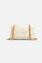 Mini Love Bag Puff di Pinko in morbida nappa con maxi trapuntatura obliqua, chiusura con iconica fibbia in metallo Love Birds Diamond Cut, interno foderato in microfibra scamosciata