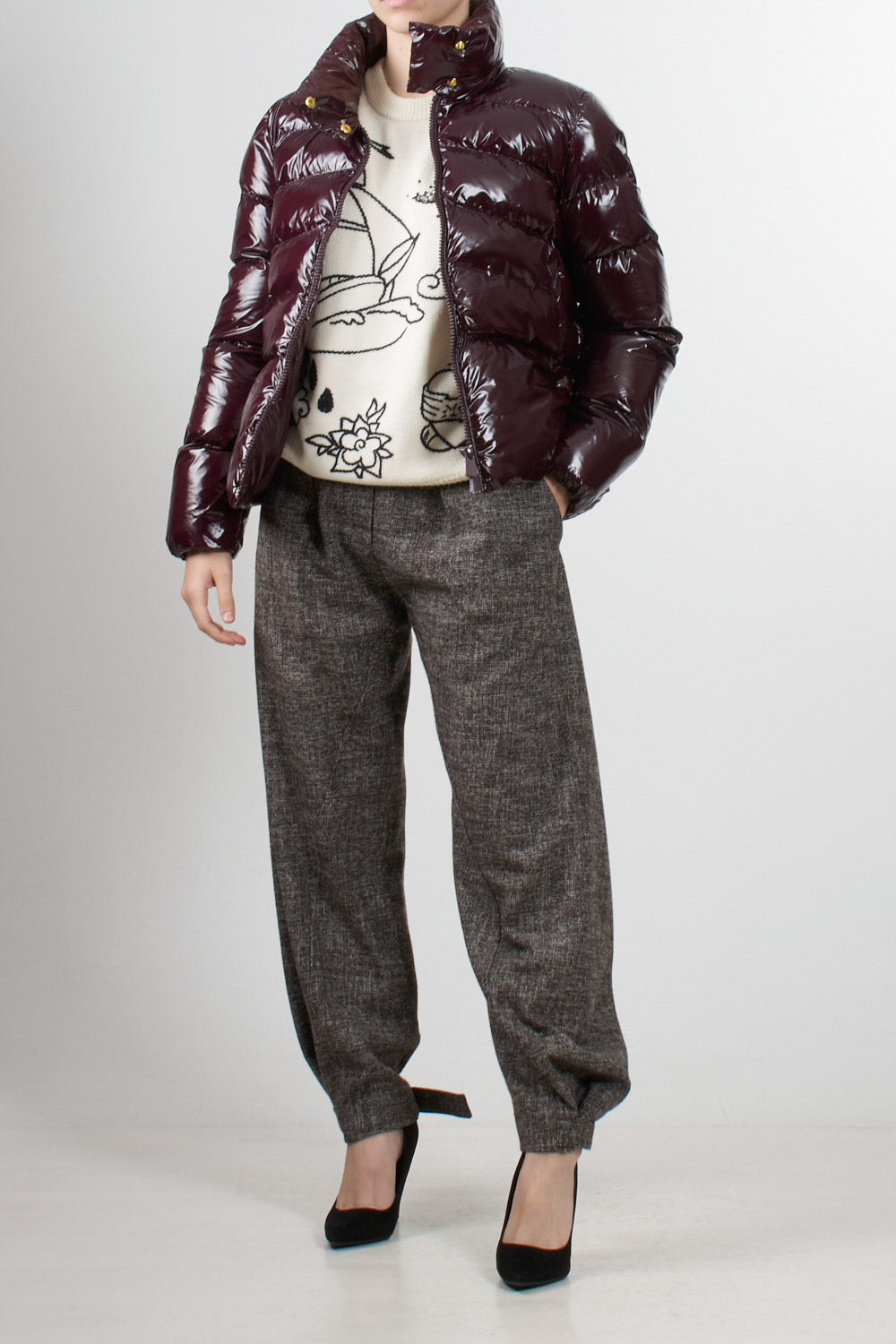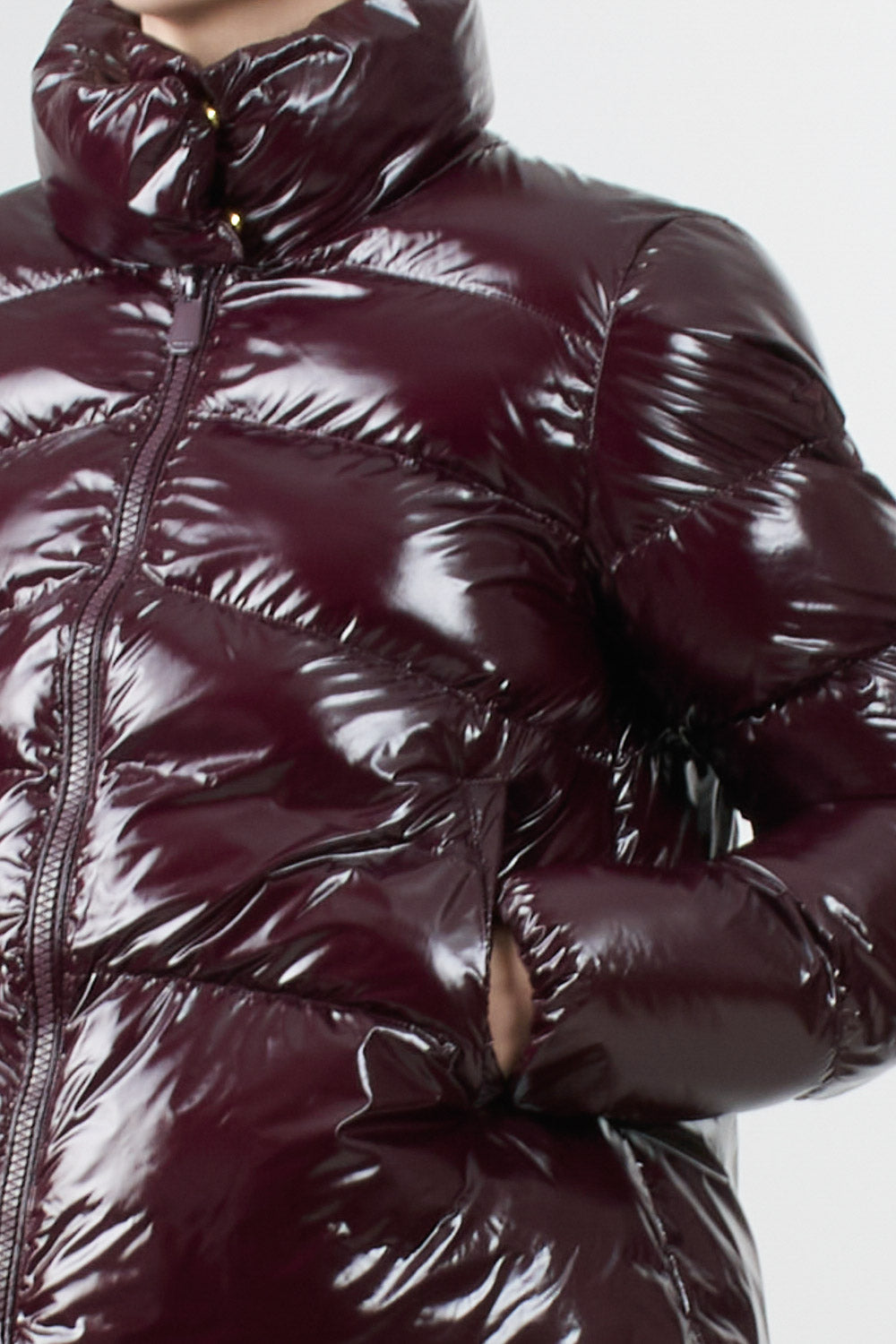 Piumino imbottito di Pinko dalla silhouette a caban, realizzato in tessuto crystal nylon con uno speciale finishing lucido che dona luminosità e un tocco sofisticato. Il modello è personalizzato dal patch logo Love Birds su una manica e presenta una trapuntatura orizzontale. È dotato di un collo alto avvolgente con bottoni nascosti, perfetto per proteggere dal freddo, e di una chiusura con zip a doppio cursore in metallo sul davanti.Un capo caldo, moderno e raffinato, ideale per affrontare la stagione fredda con stile.