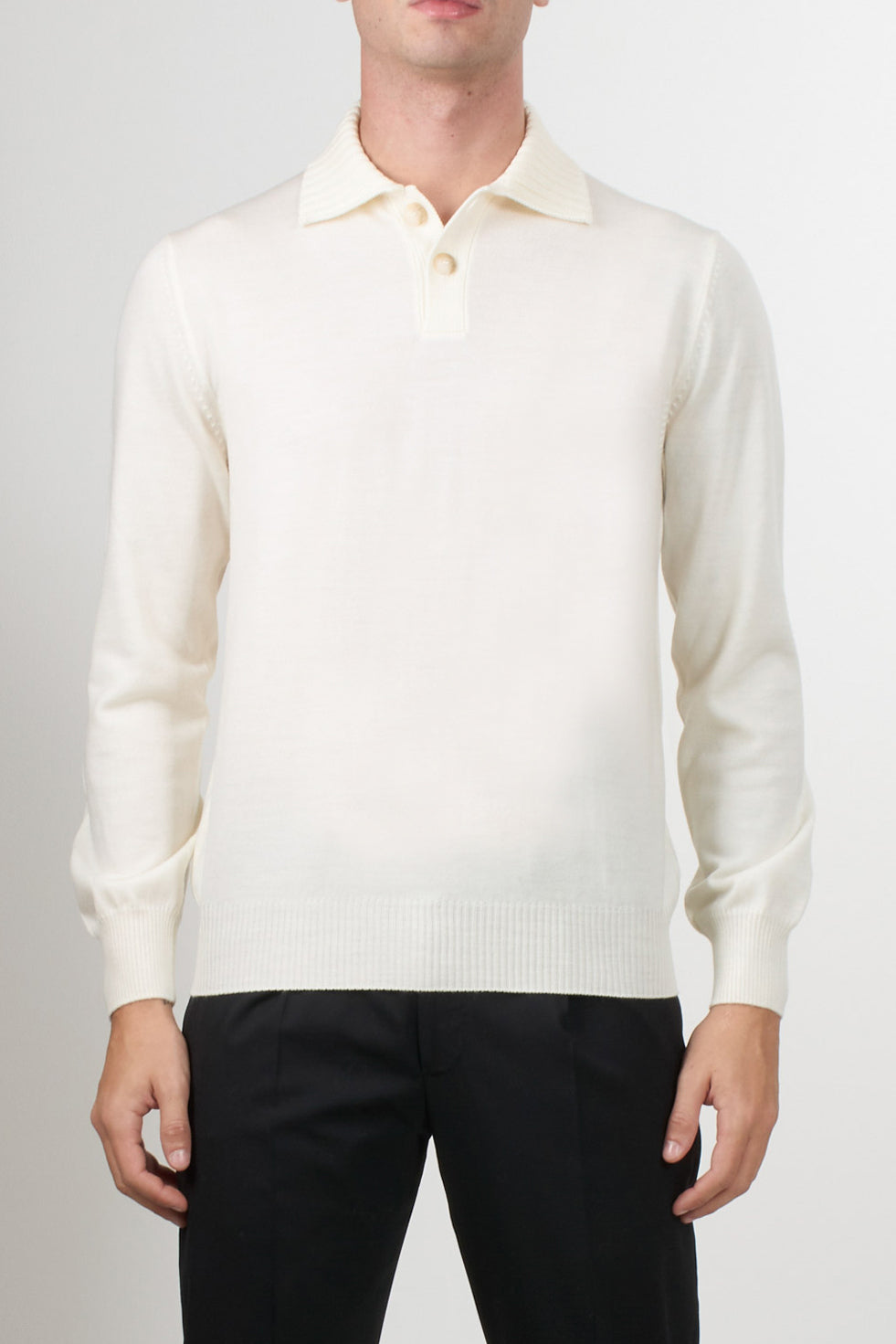 Maglia polo di Tagliatore a maniche lunghe in fine lana con colletto polo e chiusura a due bottoni. Il design pulito e la texture compatta donano un’eleganza disinvolta, ideale per completare outfit raffinati o casual chic. Polsini e fondo a costine garantiscono una vestibilità confortevole e definita.