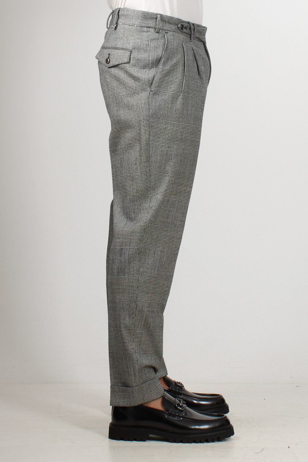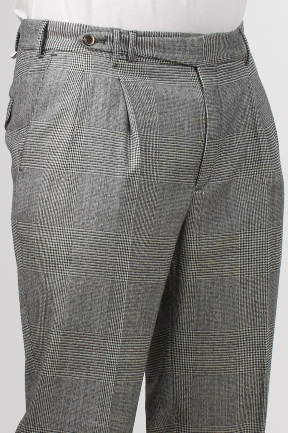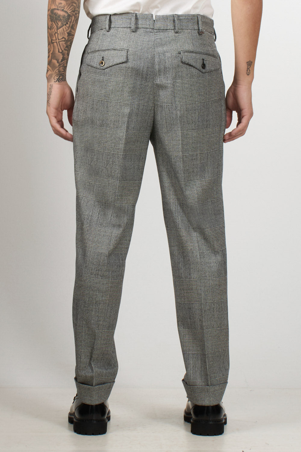Pantaloni PT Torino rappresentano l’equilibrio perfetto tra eleganza classica e modernità sartoriale. Realizzati in tessuto a motivo Principe di Galles, doppie pinces frontali, tasche laterali oblique e tasche posteriori con pattina e bottone. L’attenzione ai dettagli e la qualità delle finiture confermano l’eccellenza del marchio PT Torino.