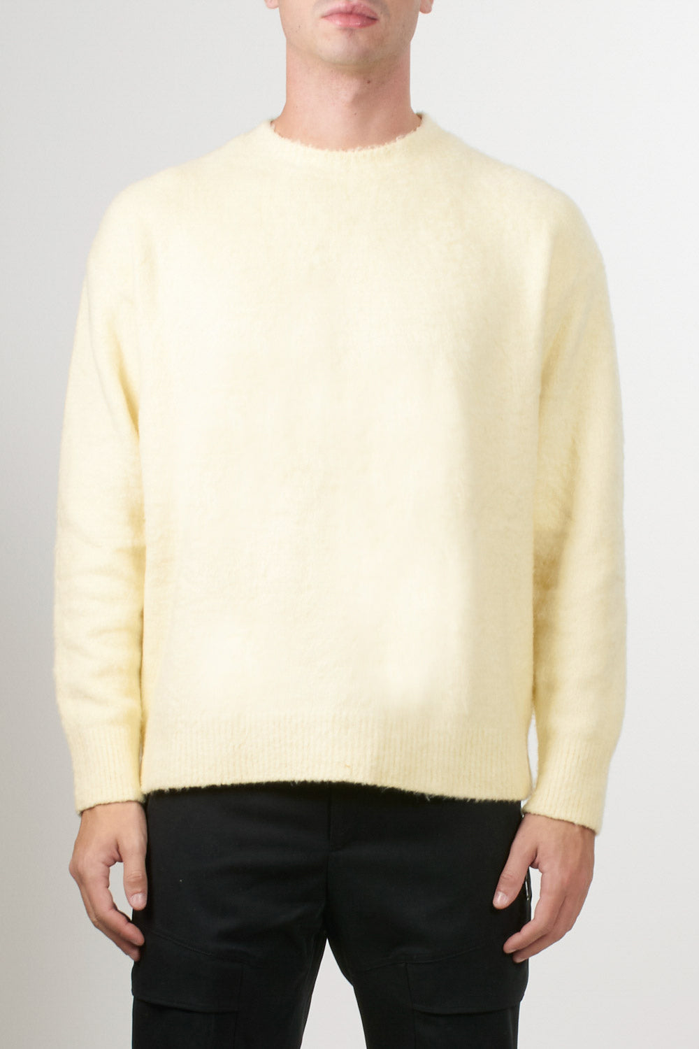 Maglia Roberto Collina dal design essenziale e contemporaneo, realizzata in un filato morbido e leggermente peloso che conferisce al capo un aspetto caldo e avvolgente,scollo rotondo, maniche lunghe e finiture a costine su polsini e fondo. P