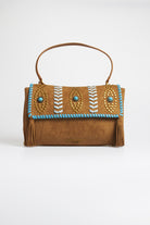 Borsa tote Les Jours XL Etnic dal carattere deciso e d’ispirazione etnica, realizzata in materiale effetto suede color cuoio. La pattina frontale è impreziosita da borchie dorate, applicazioni con pietre turchesi e motivi intrecciati a contrasto che richiamano geometrie tribali, donando personalità e stile al modello. Le nappine laterali aggiungono movimento, mentre la tracolla regolabile assicura praticità e comfort. Perfetta per completare look casual con un tocco distintivo e ricercato.