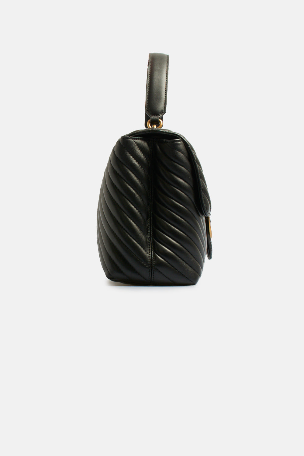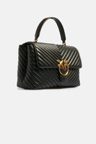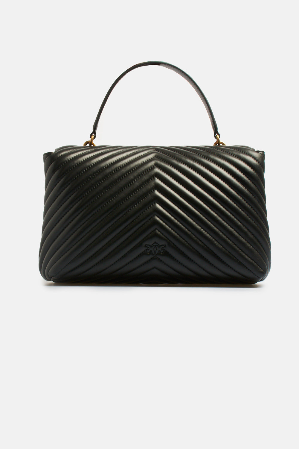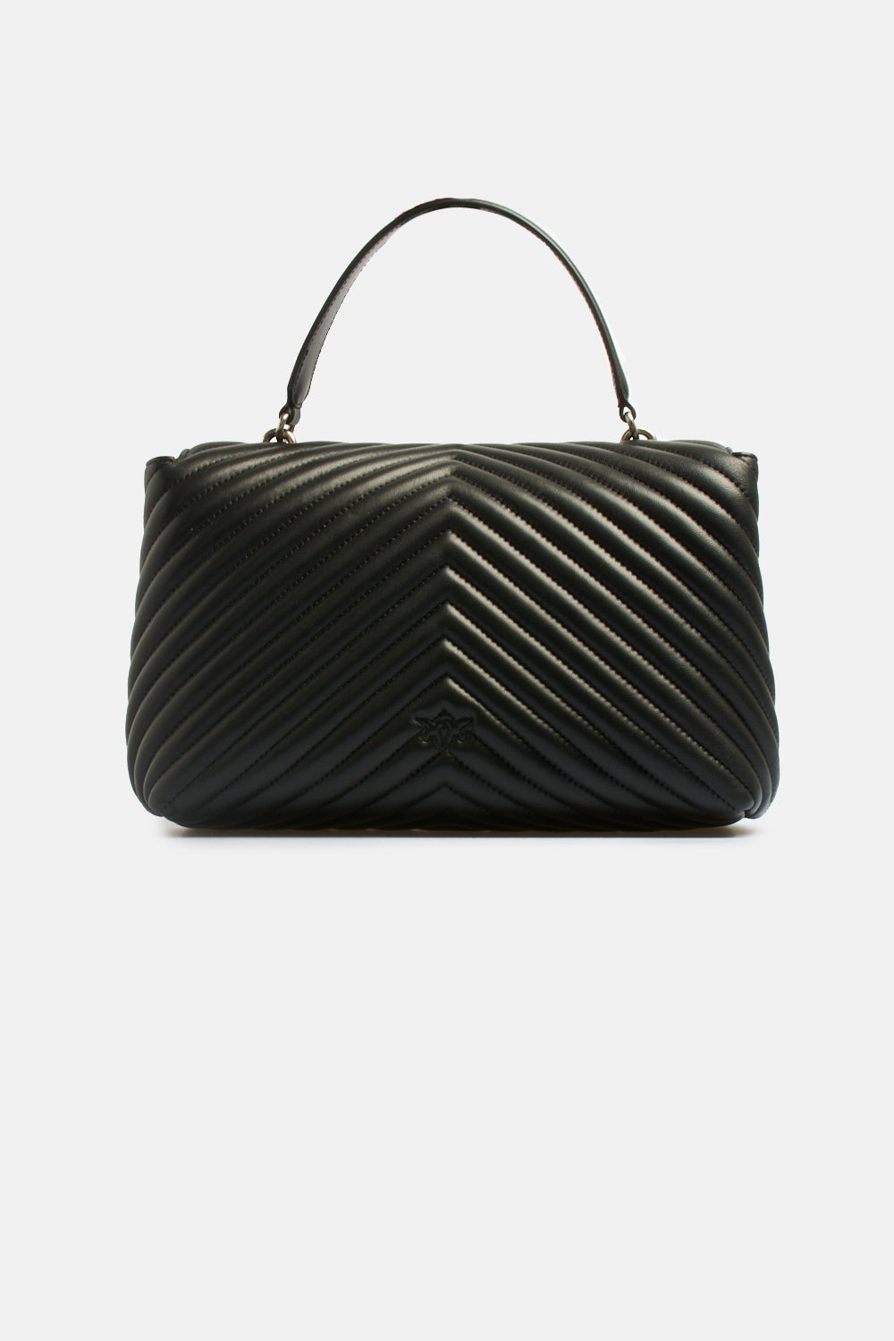 Big Love Bag Puff di Pinko in nappa trapuntata con motivo chevron, chiusura completata dall'iconica fibbia in metallo Love Birds Diamond Cut, interno foderato in microfibra scamosciata e comprende tramezza chiusa con zip e tasca a parete, tracolla removibile