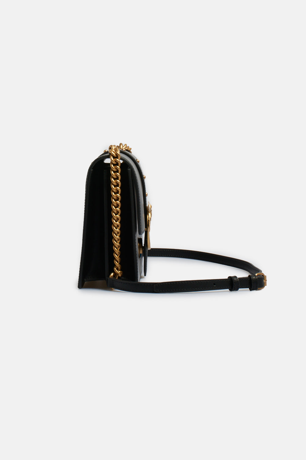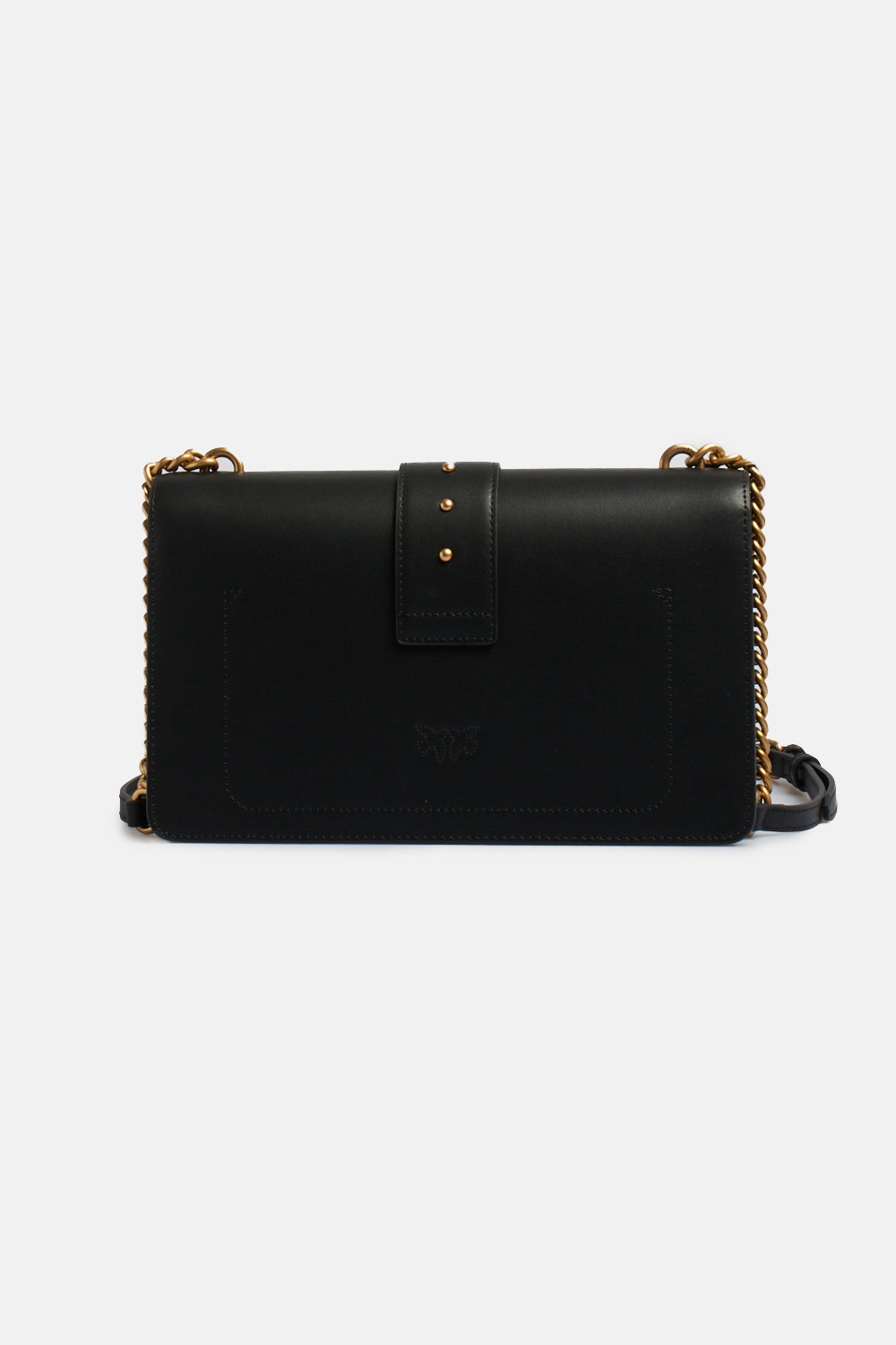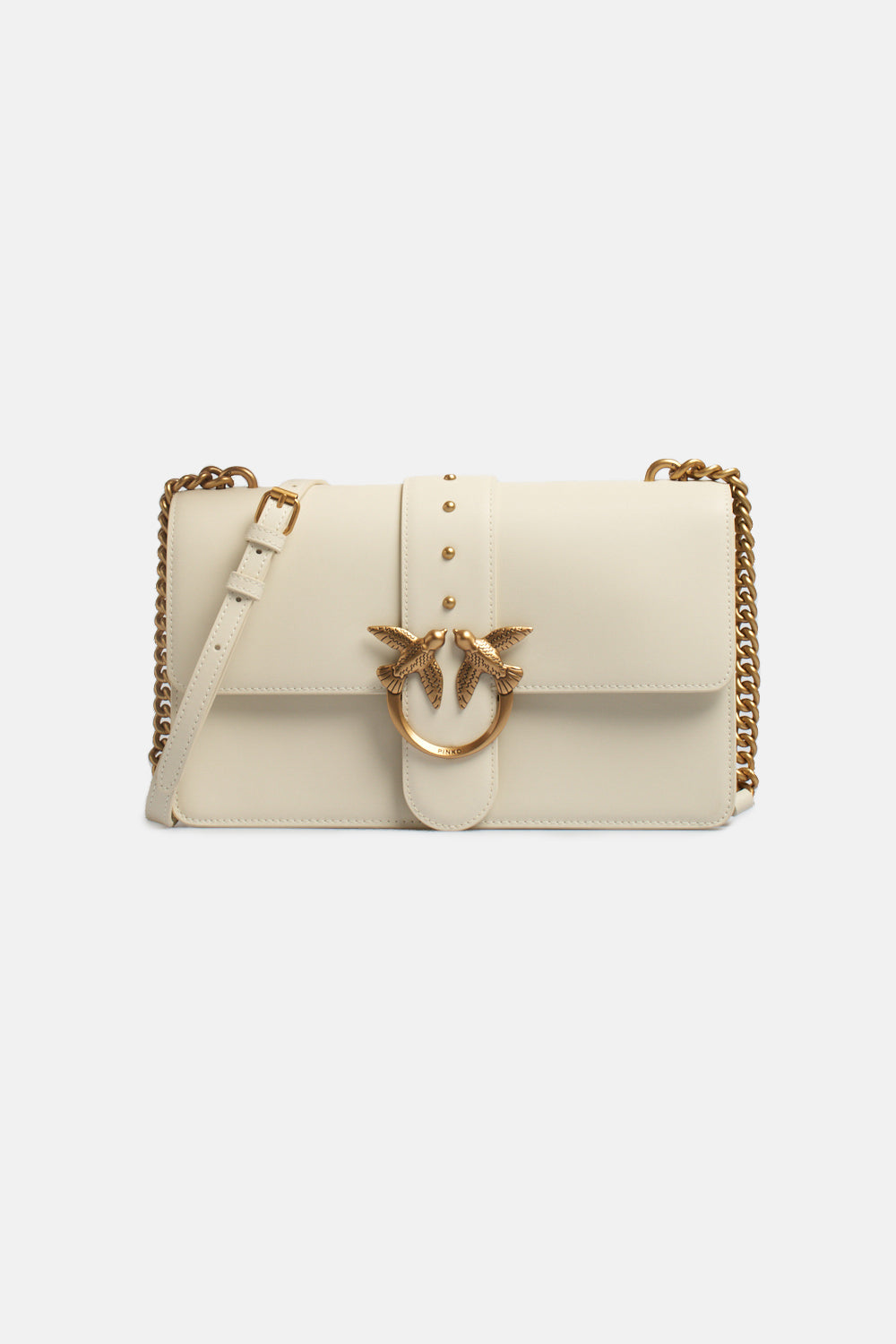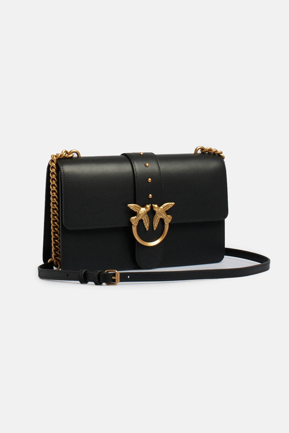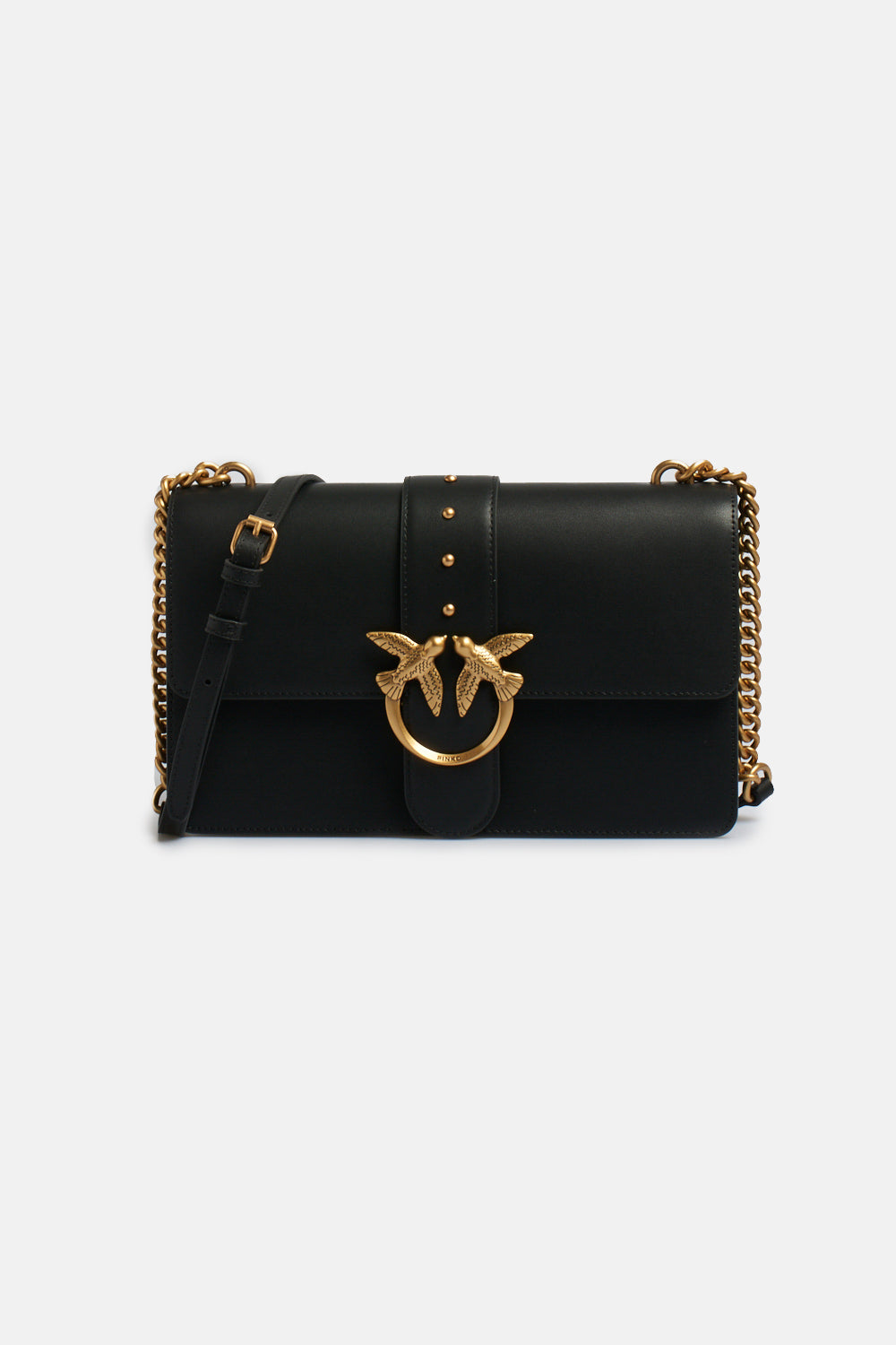Borsa Pinko modello Love One Classico con fibbia Love Birds Pinko in metallo, borchie applicate, chiusura con patta e meccanismo ad incastro, interni in tessuto, due scomparti, tracolla regolabile