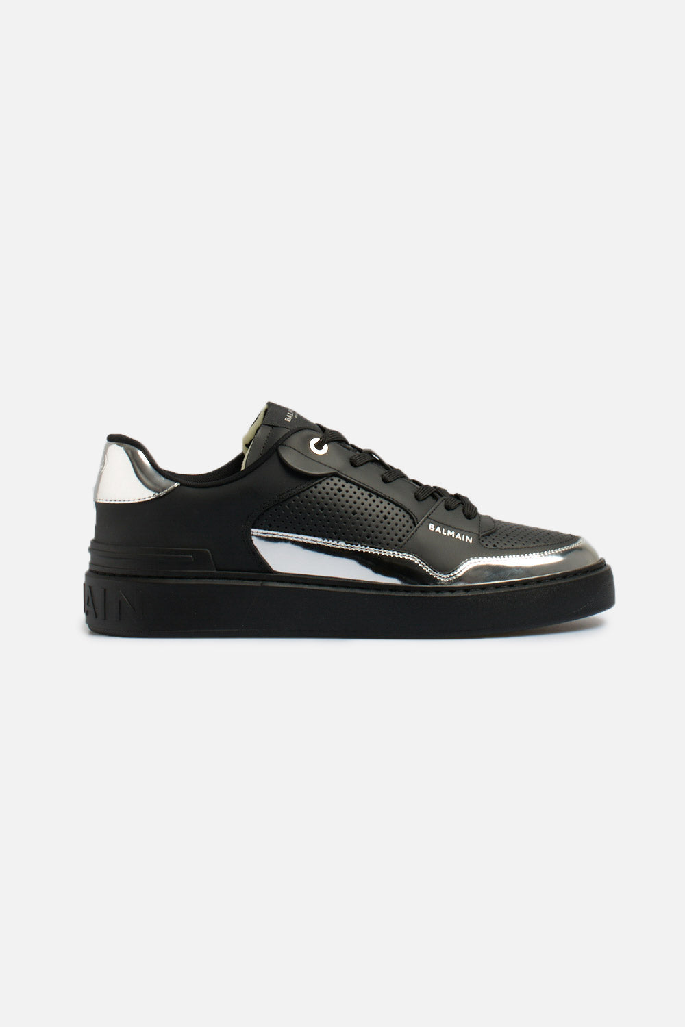 SneakersBalmain, realizzate in pelle liscia con profilo basso e linee pulite. Il design minimalista è valorizzato da dettagli metallici sul tallone con logo “B” inciso e dall’iconica scritta BALMAIN a rilievo sulla suola. Il modello presenta chiusura con lacci, linguetta frontale logata e occhielli metallici che conferiscono un aspetto raffinato e contemporaneo. Una calzatura versatile e di carattere, ideale per completare look casual o urban chic.